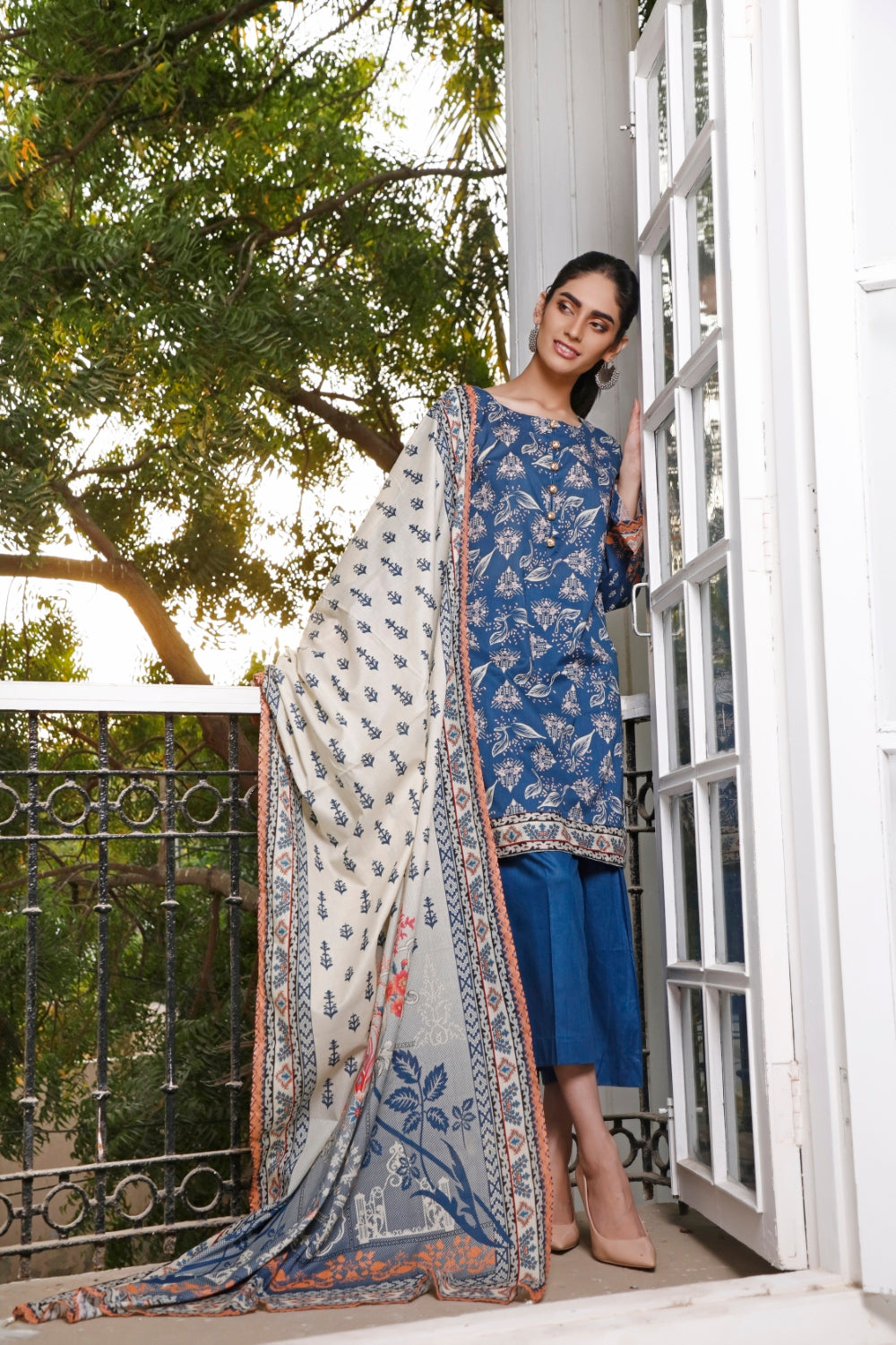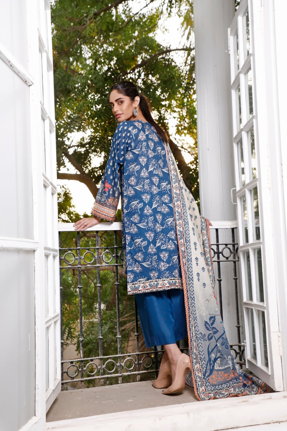 Printed Shirt 2.5M Printed Dupatta +Sleeve 3Mdyed Trouser 2.5M