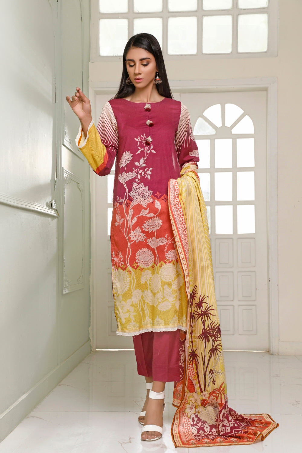 Printed Shirt 3M Printed Dupatta 2.5Mdyed Trouser 2.5M