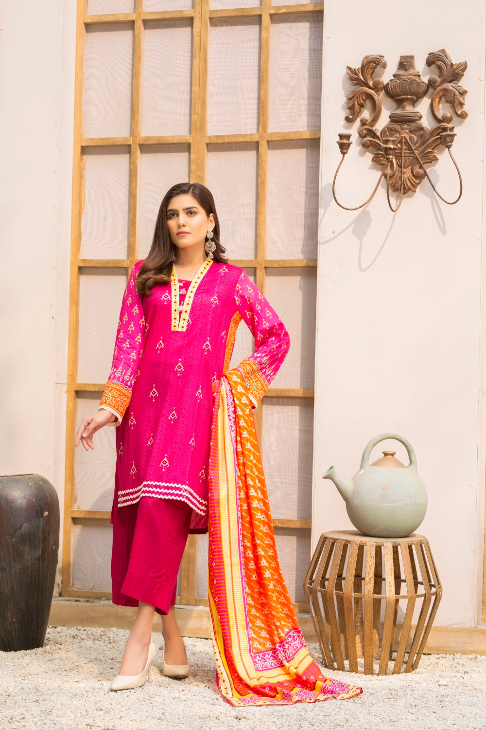 Printed Shirt 3M Printed Dupatta + Sleeve 3Mdyed Trouser 2.5M