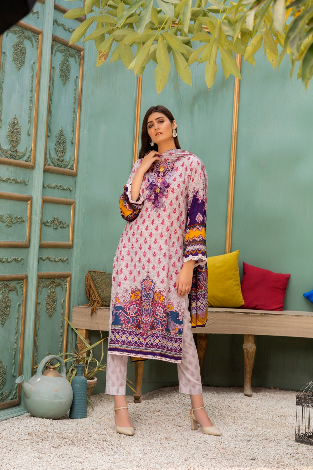 Printed Shirt 3M Printed Voil Dupatta 2.5Mprinted Trouser 2.5M