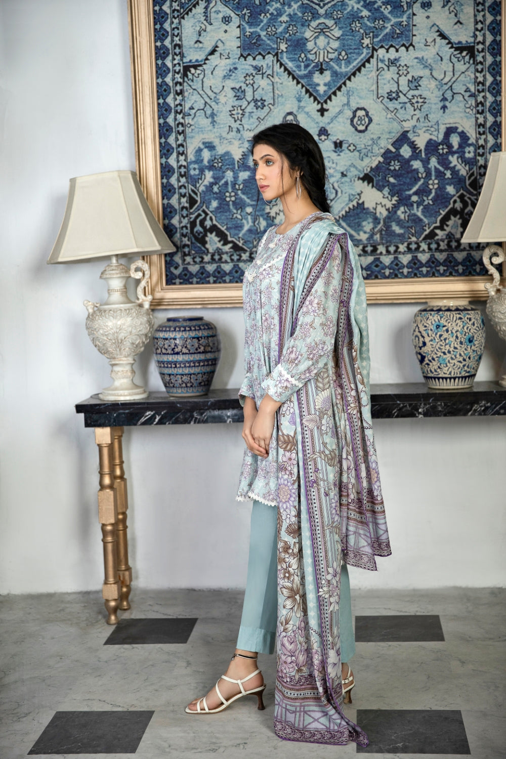 Stitched articles come with trousers tailored to match the unstitched trouser fabric provided. Please note that any appearance of shararas/ghararas in product images is for shoot purposes only unless otherwise specified in product details.