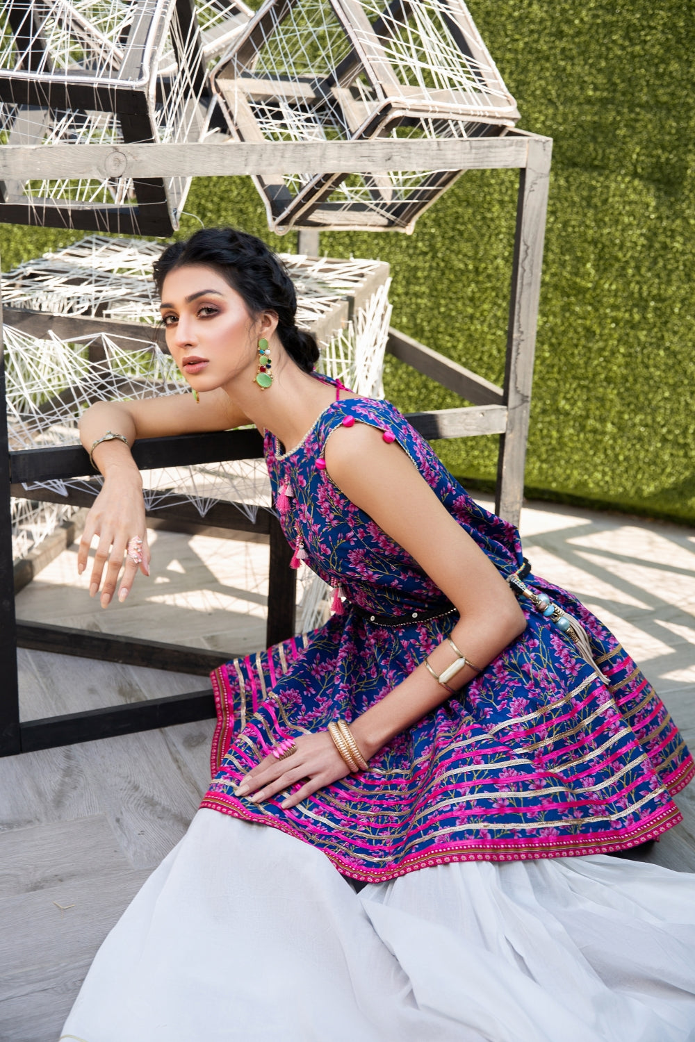 Stitched articles come with trousers tailored to match the unstitched trouser fabric provided. Please note that any appearance of shararas/ghararas in product images is for shoot purposes only unless otherwise specified in product details.