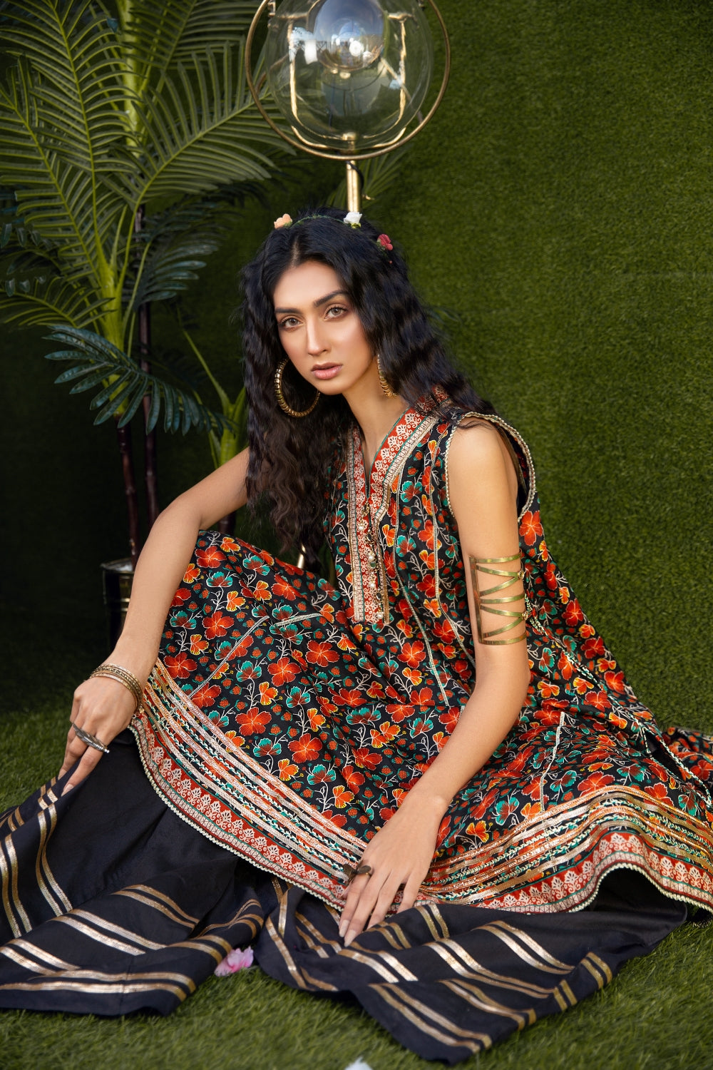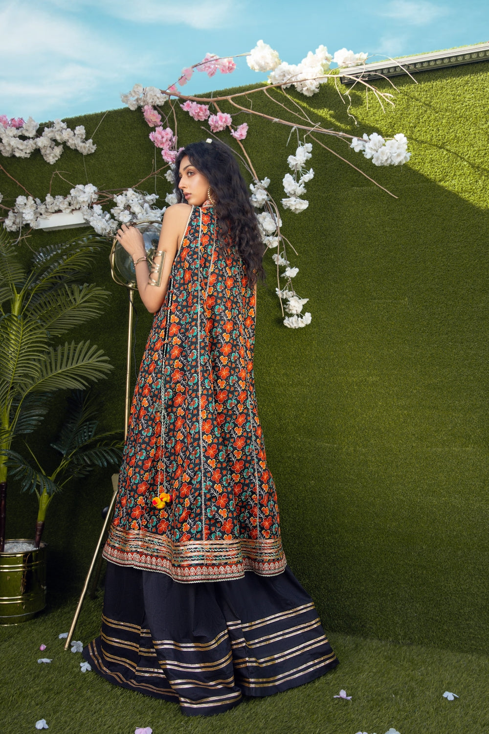 Stitched articles come with trousers tailored to match the unstitched trouser fabric provided. Please note that any appearance of shararas/ghararas in product images is for shoot purposes only unless otherwise specified in product details.