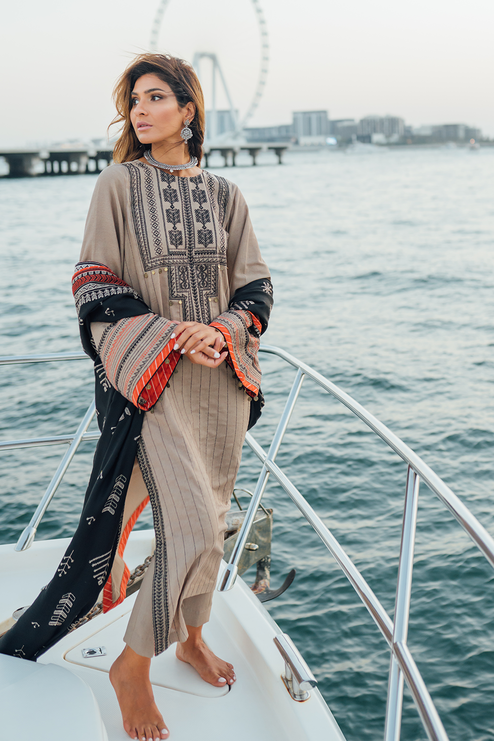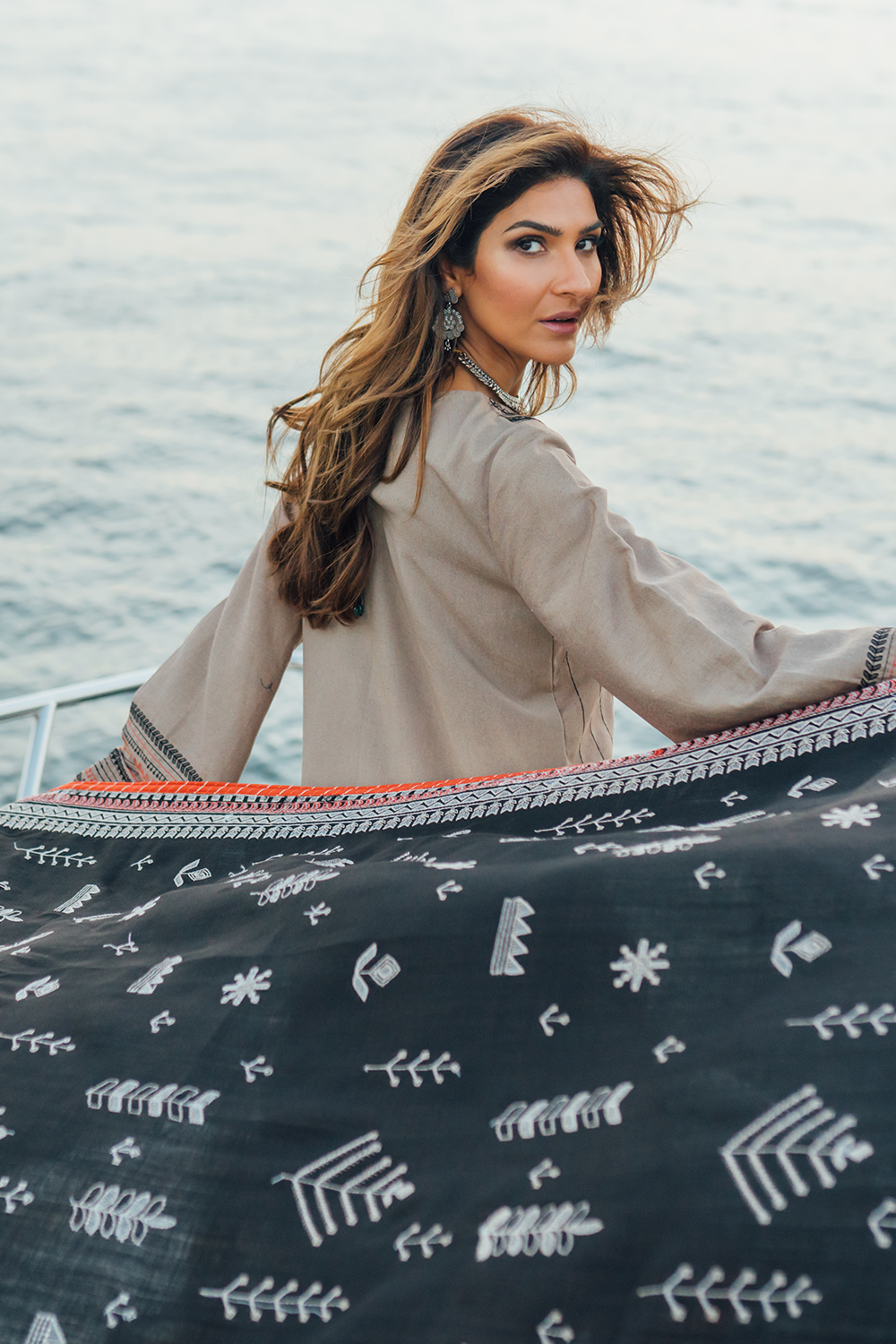 DYED EMBROIDERED FRONT (COTTON KARANDI) 1.25 MTR