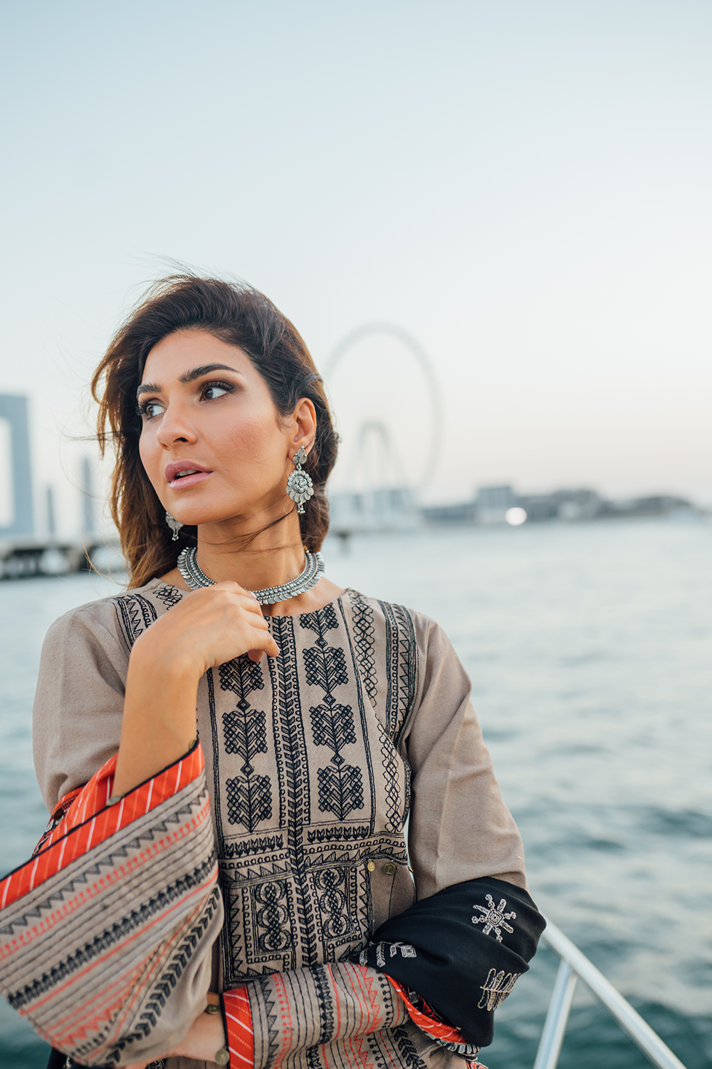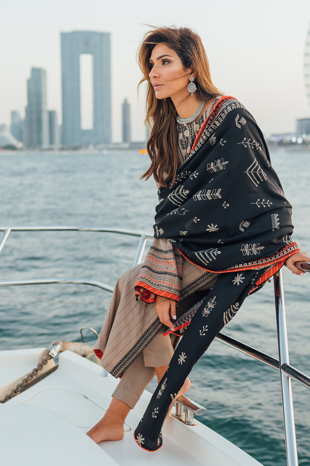 Stitched articles come with trousers tailored to match the unstitched trouser fabric provided. Please note that any appearance of shararas/ghararas in product images is for shoot purposes only unless otherwise specified in product details.