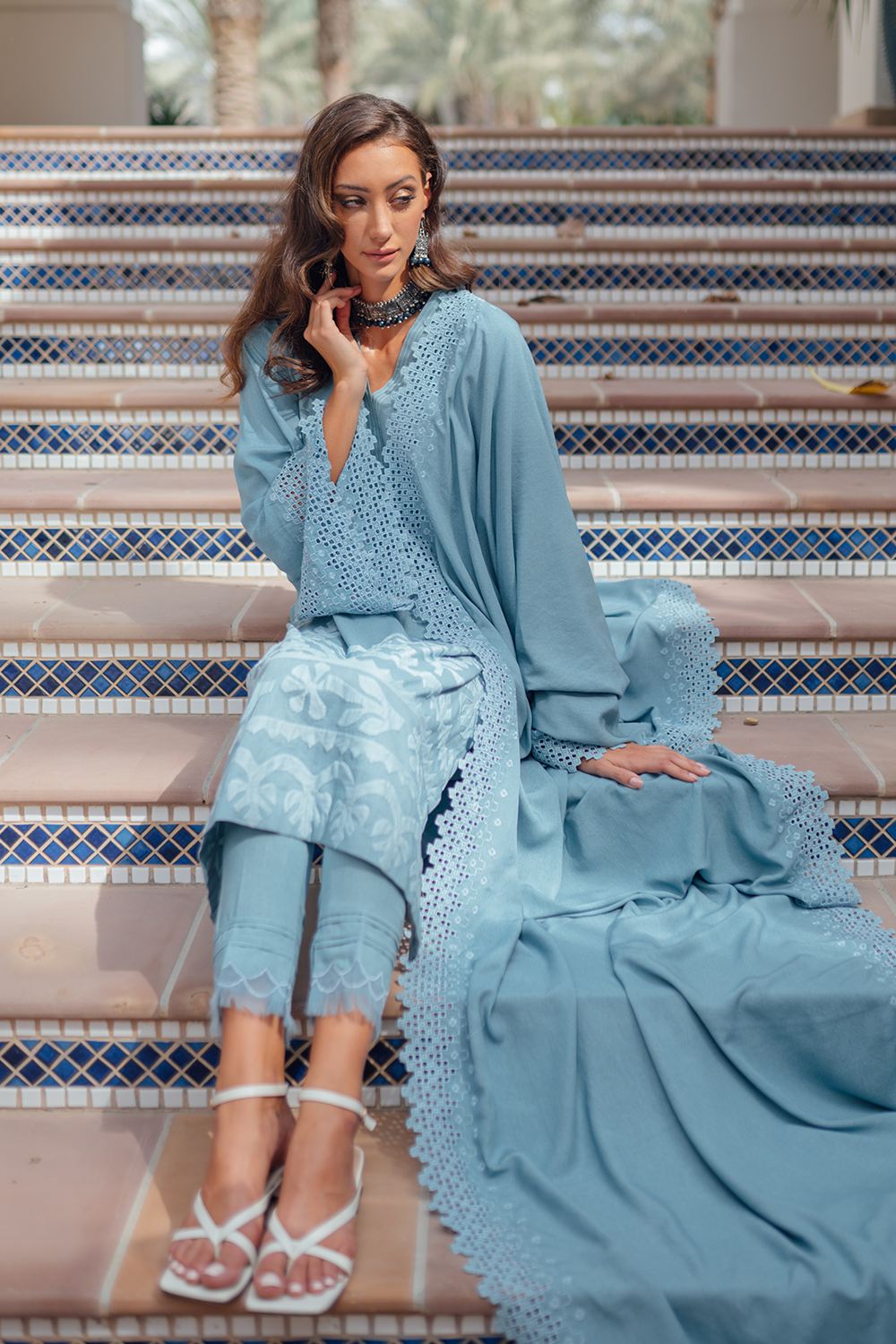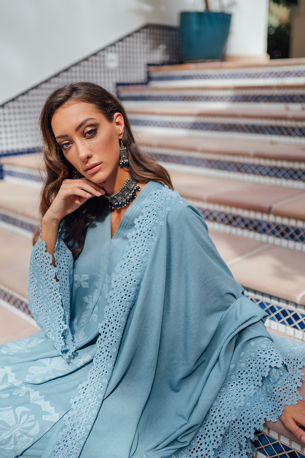 DYED SCHIFFLI EMBROIDERED SHAWL (SILK KARANDI) 2.5 MTR