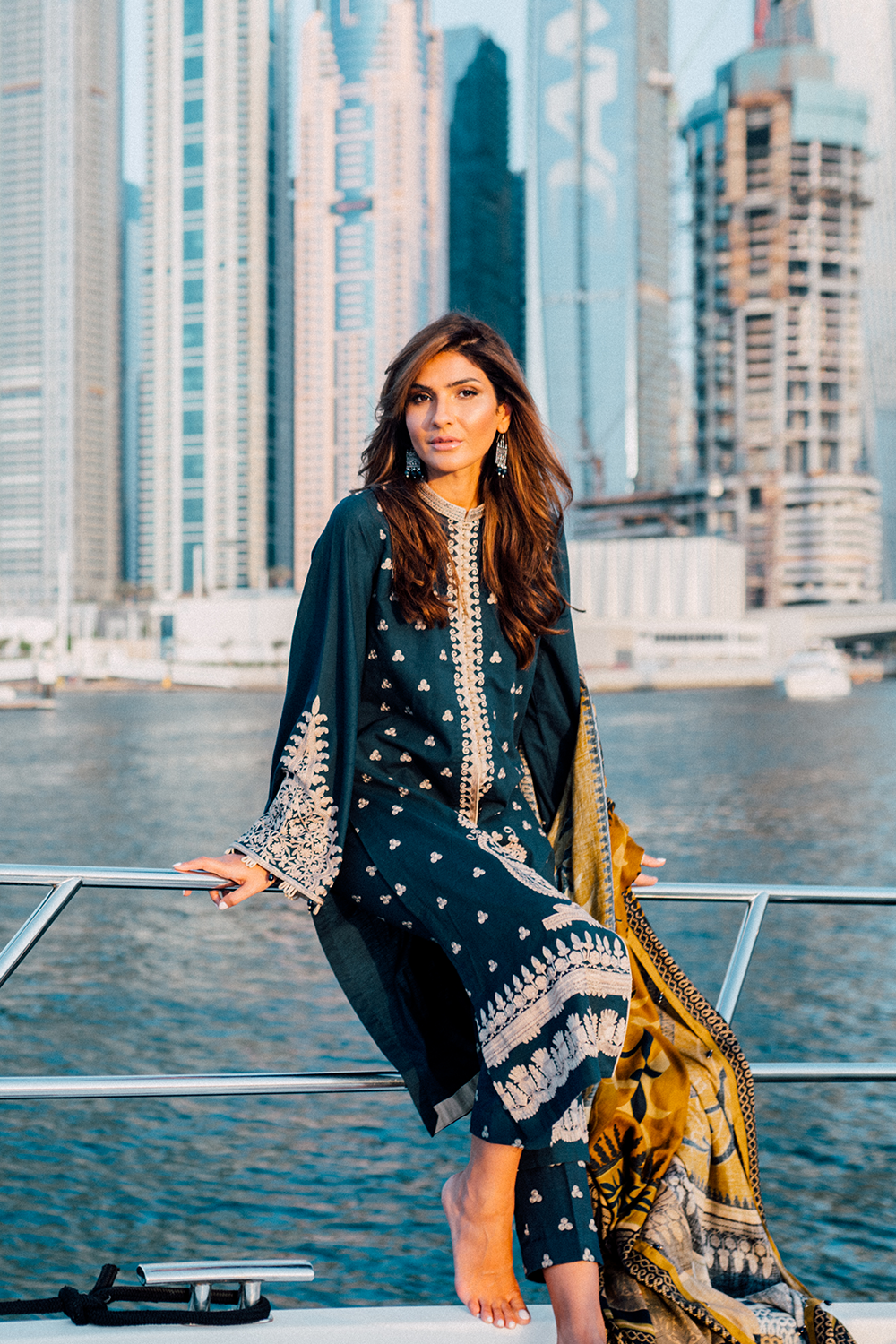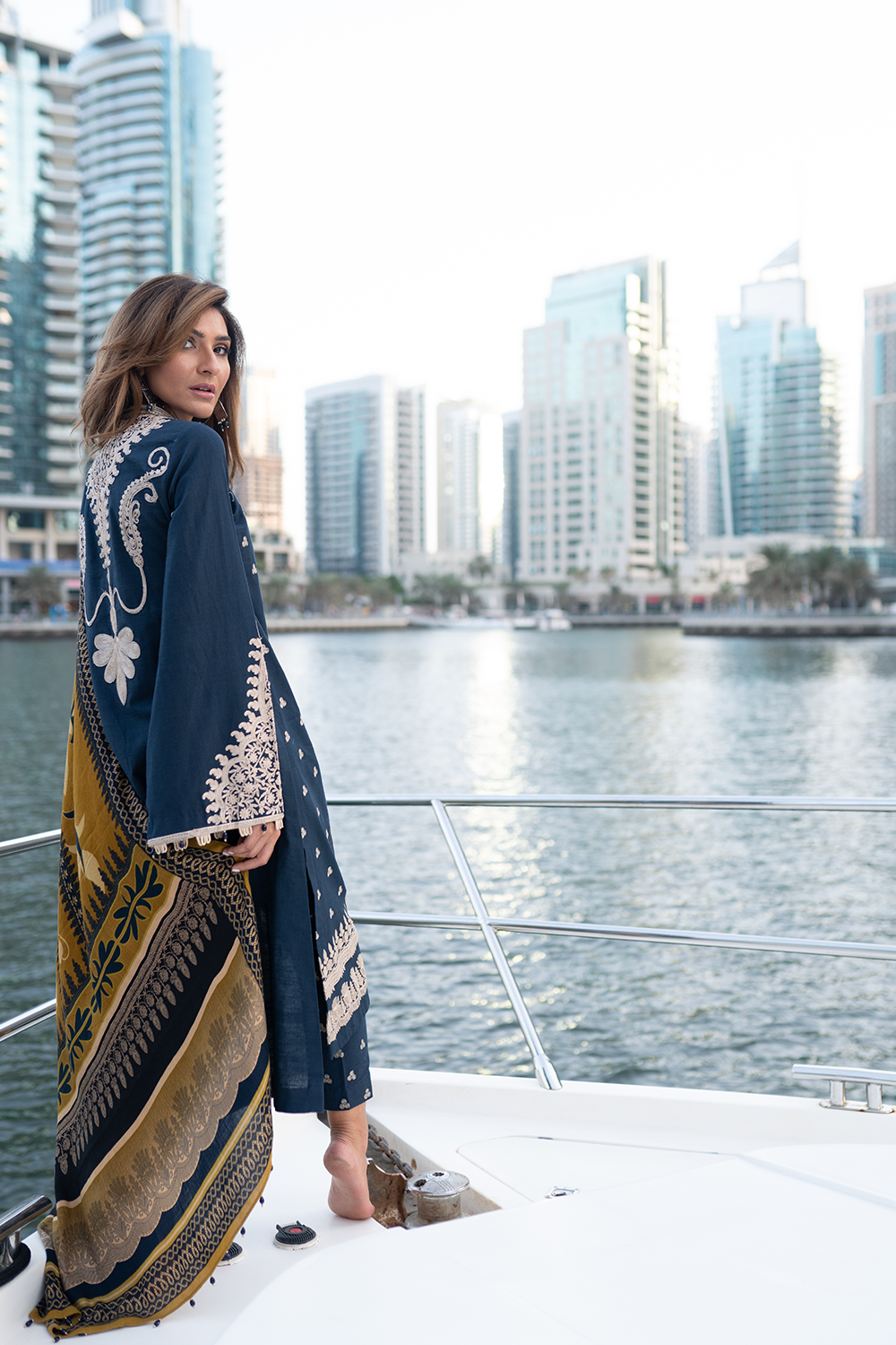 Stitched articles come with trousers tailored to match the unstitched trouser fabric provided. Please note that any appearance of shararas/ghararas in product images is for shoot purposes only unless otherwise specified in product details.