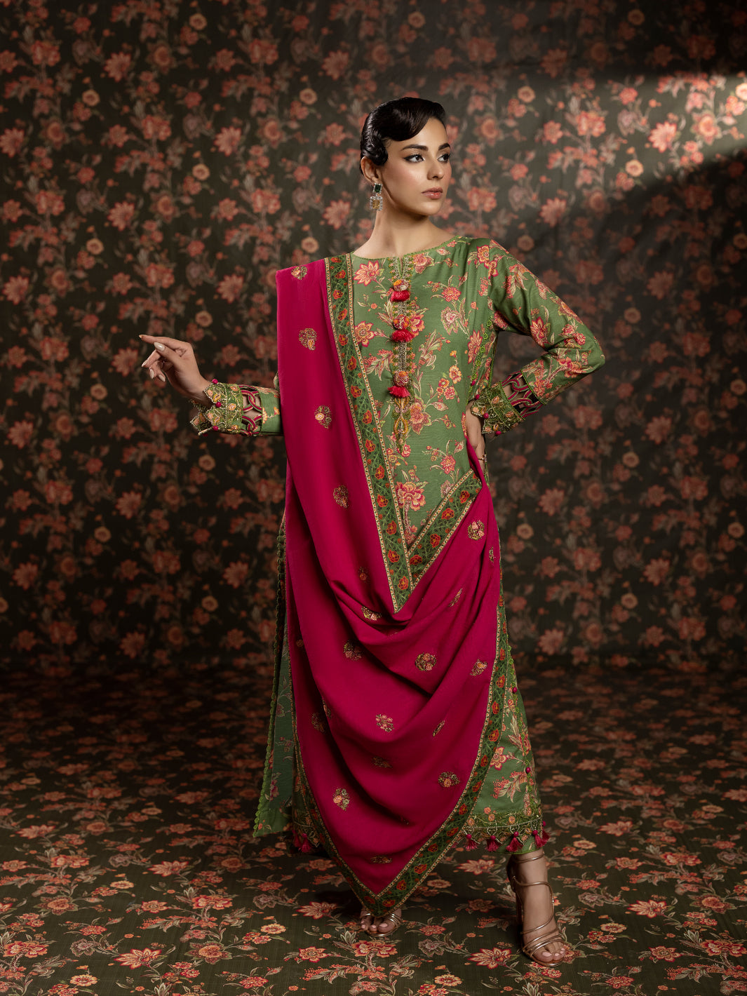 - Printed sleeves on slub khaddar 1 M