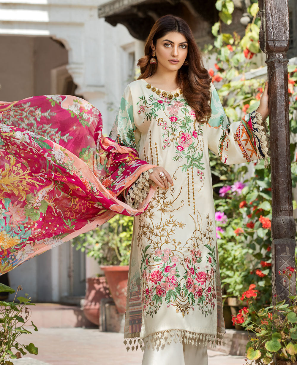 Stitched articles come with trousers tailored to match the unstitched trouser fabric provided. Please note that any appearance of shararas/ghararas in product images is for shoot purposes only unless otherwise specified in product details.