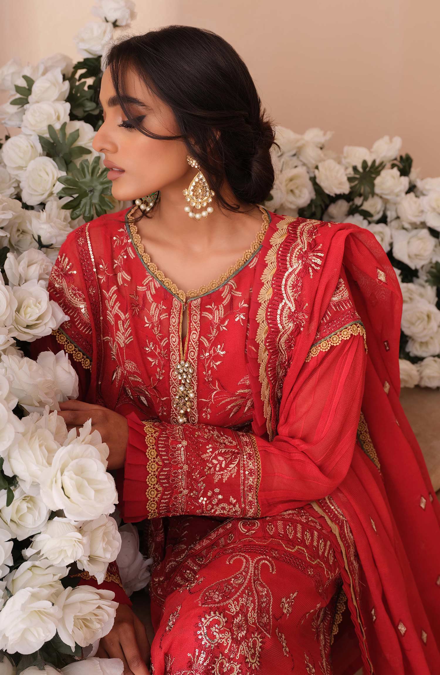 Stitched articles come with trousers tailored to match the unstitched trouser fabric provided. Please note that any appearance of shararas/ghararas in product images is for shoot purposes only unless otherwise specified in product details.