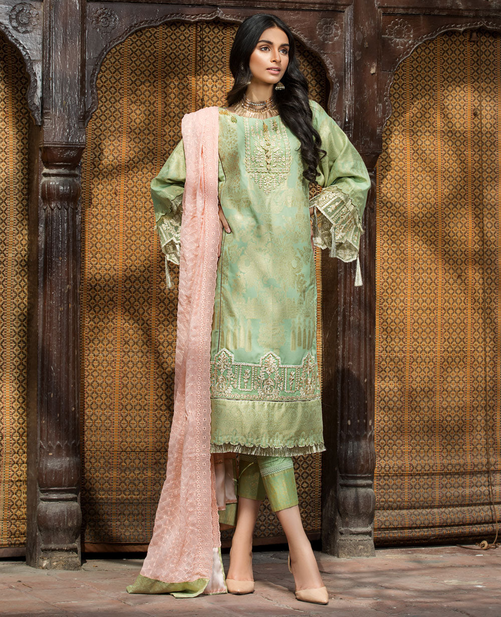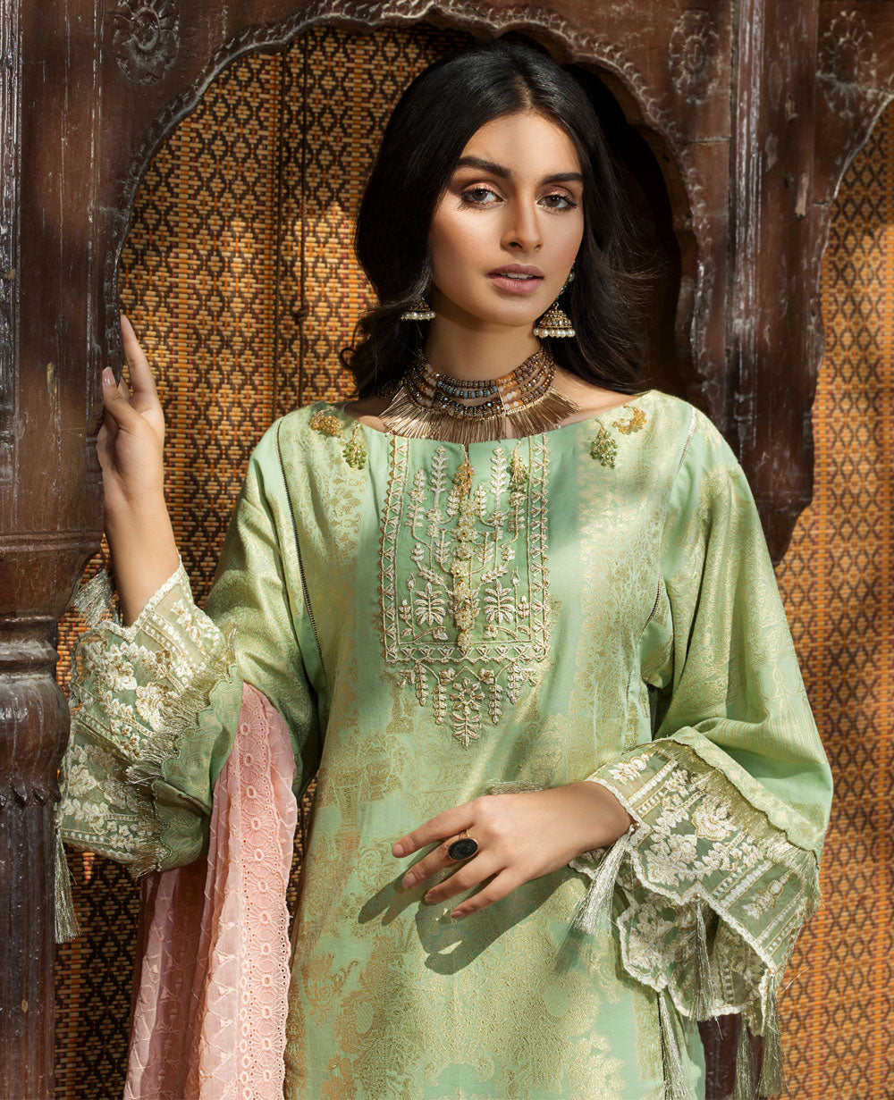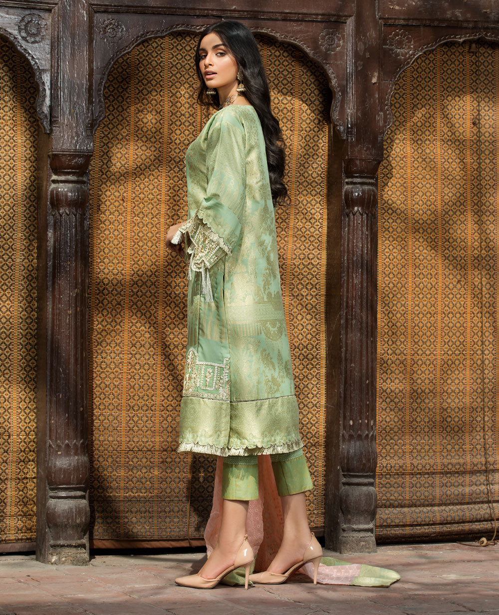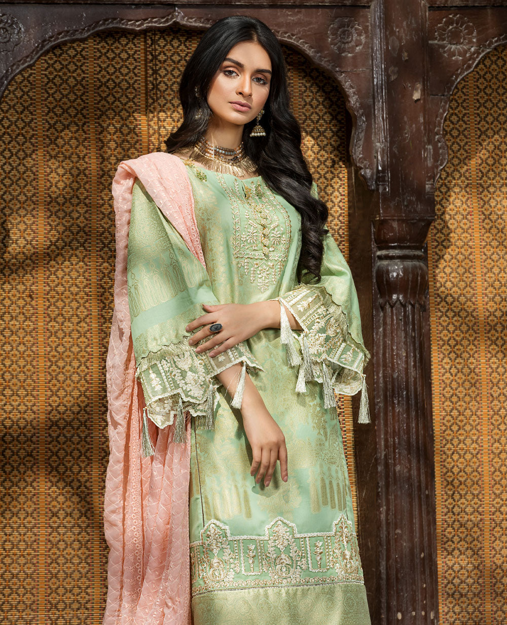 Stitched articles come with trousers tailored to match the unstitched trouser fabric provided. Please note that any appearance of shararas/ghararas in product images is for shoot purposes only unless otherwise specified in product details.
