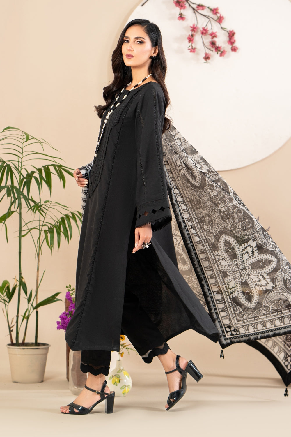 Shirt: Dobby Dyed Lawn Embellished with Laces Trims and Buttons