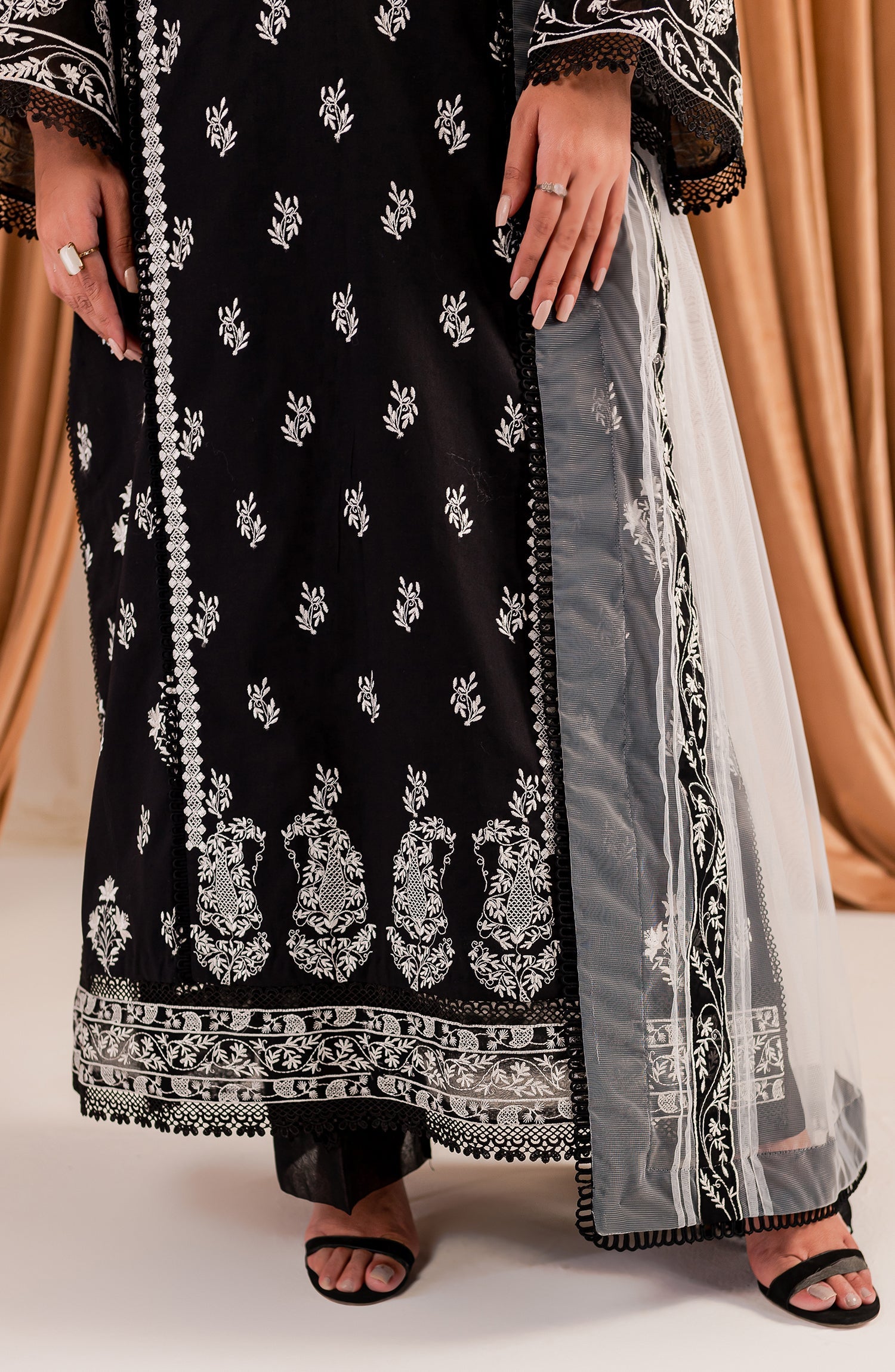 Embroidered Net Dupatta With Embroidered Organza Patti Patch 2.50Mtr