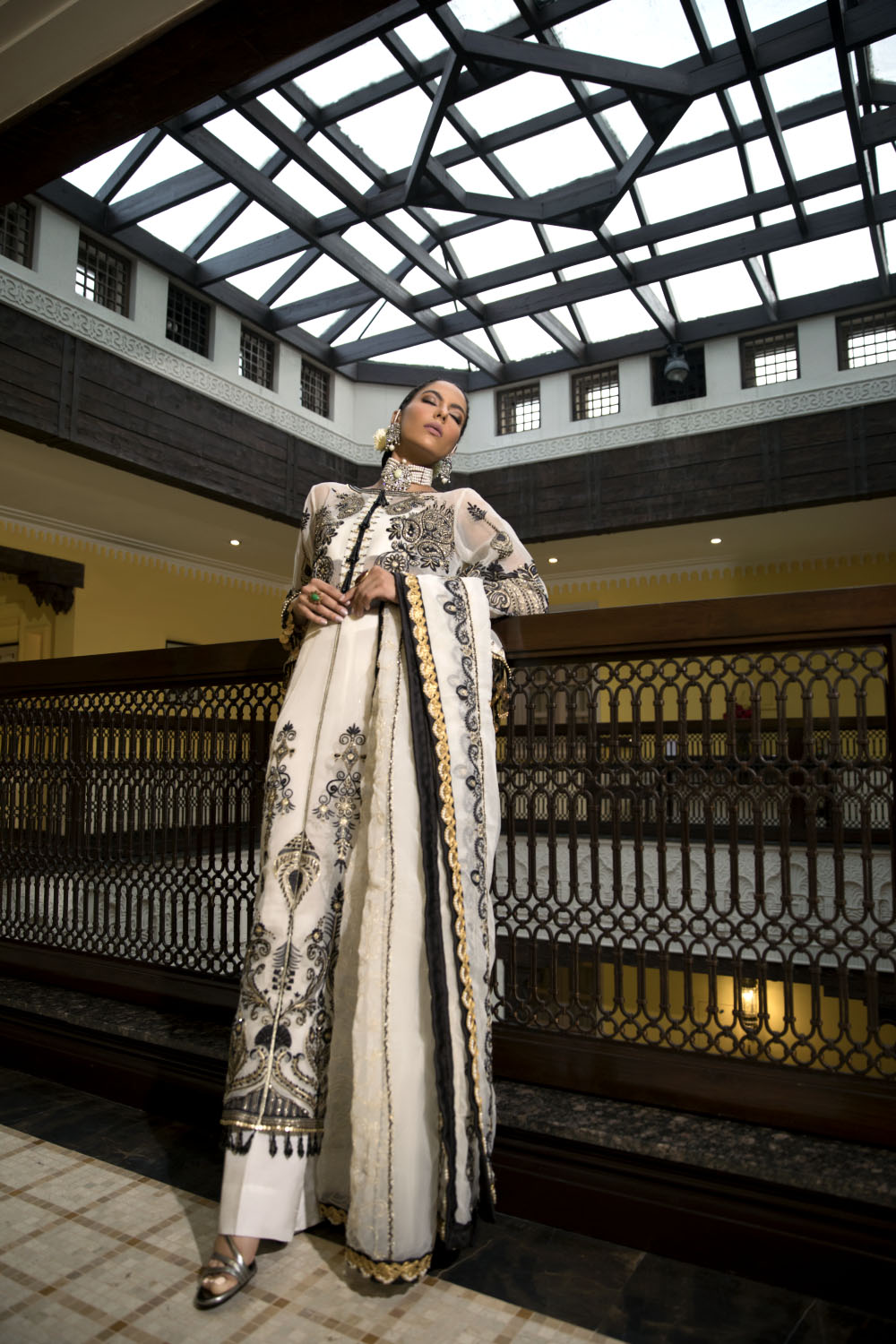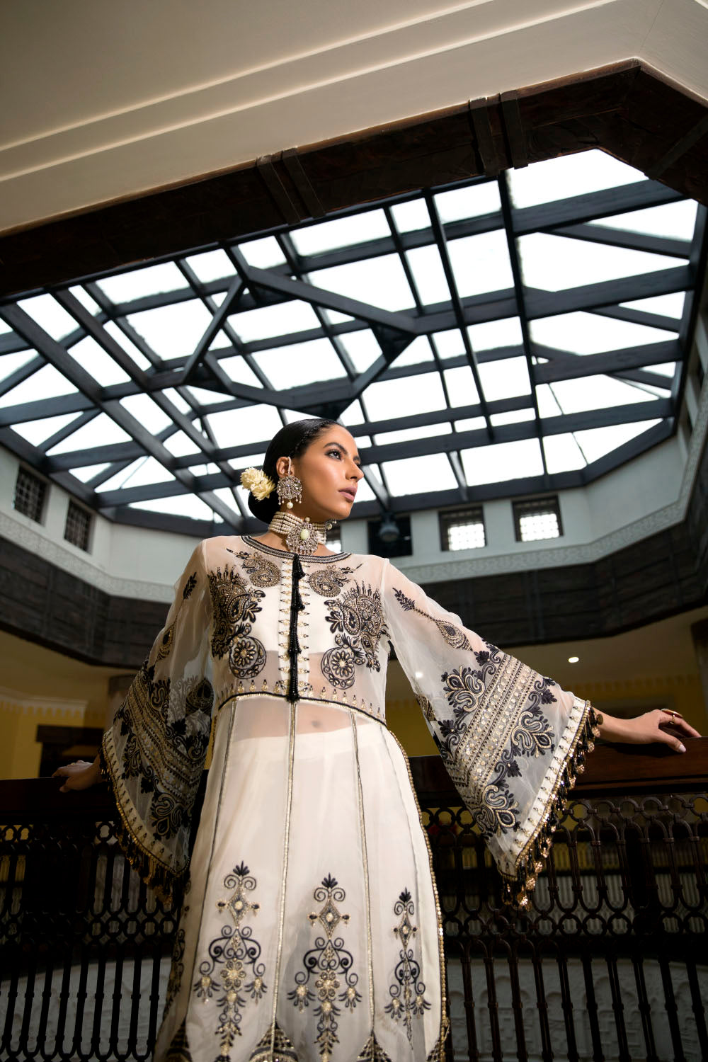Stitched articles come with trousers tailored to match the unstitched trouser fabric provided. Please note that any appearance of shararas/ghararas in product images is for shoot purposes only unless otherwise specified in product details.