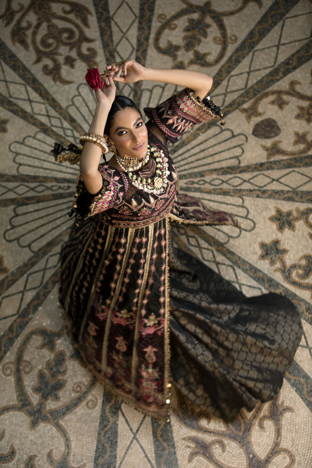 Stitched articles come with trousers tailored to match the unstitched trouser fabric provided. Please note that any appearance of shararas/ghararas in product images is for shoot purposes only unless otherwise specified in product details.