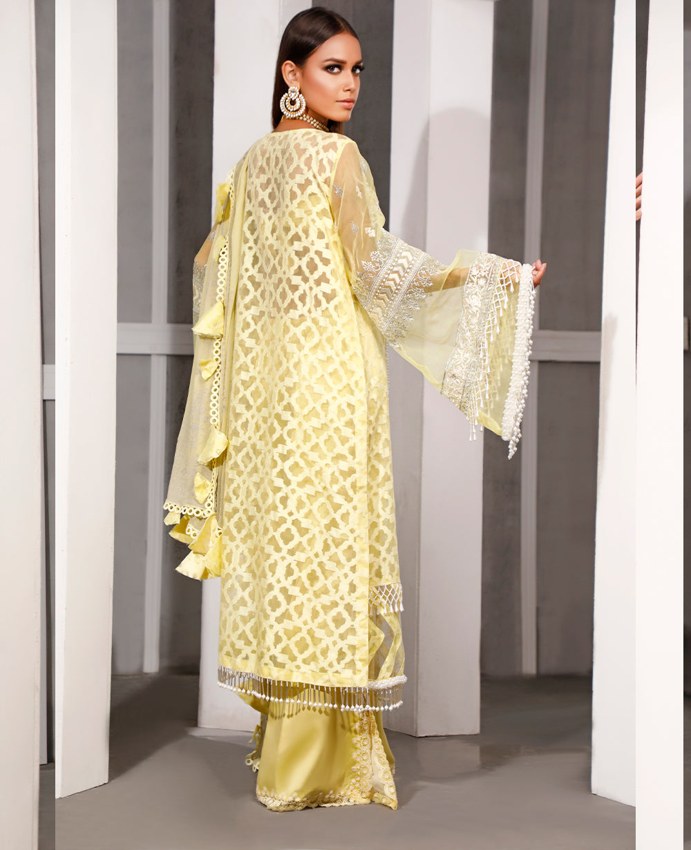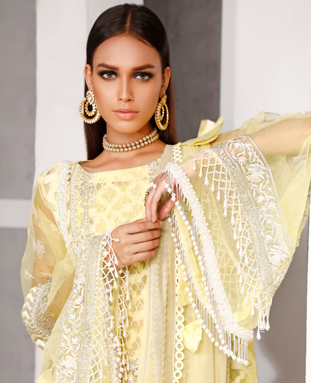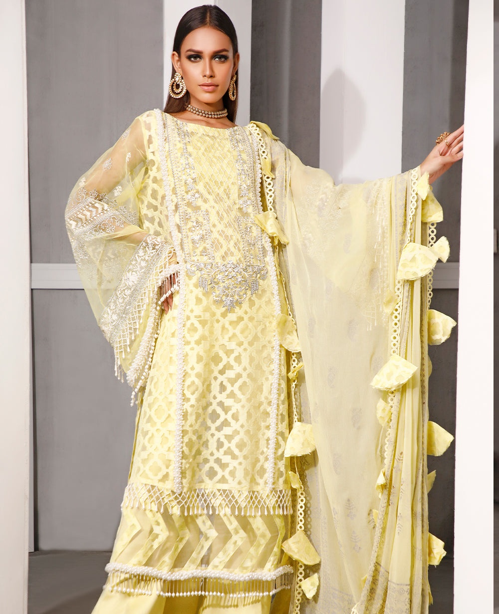 Stitched articles come with trousers tailored to match the unstitched trouser fabric provided. Please note that any appearance of shararas/ghararas in product images is for shoot purposes only unless otherwise specified in product details.