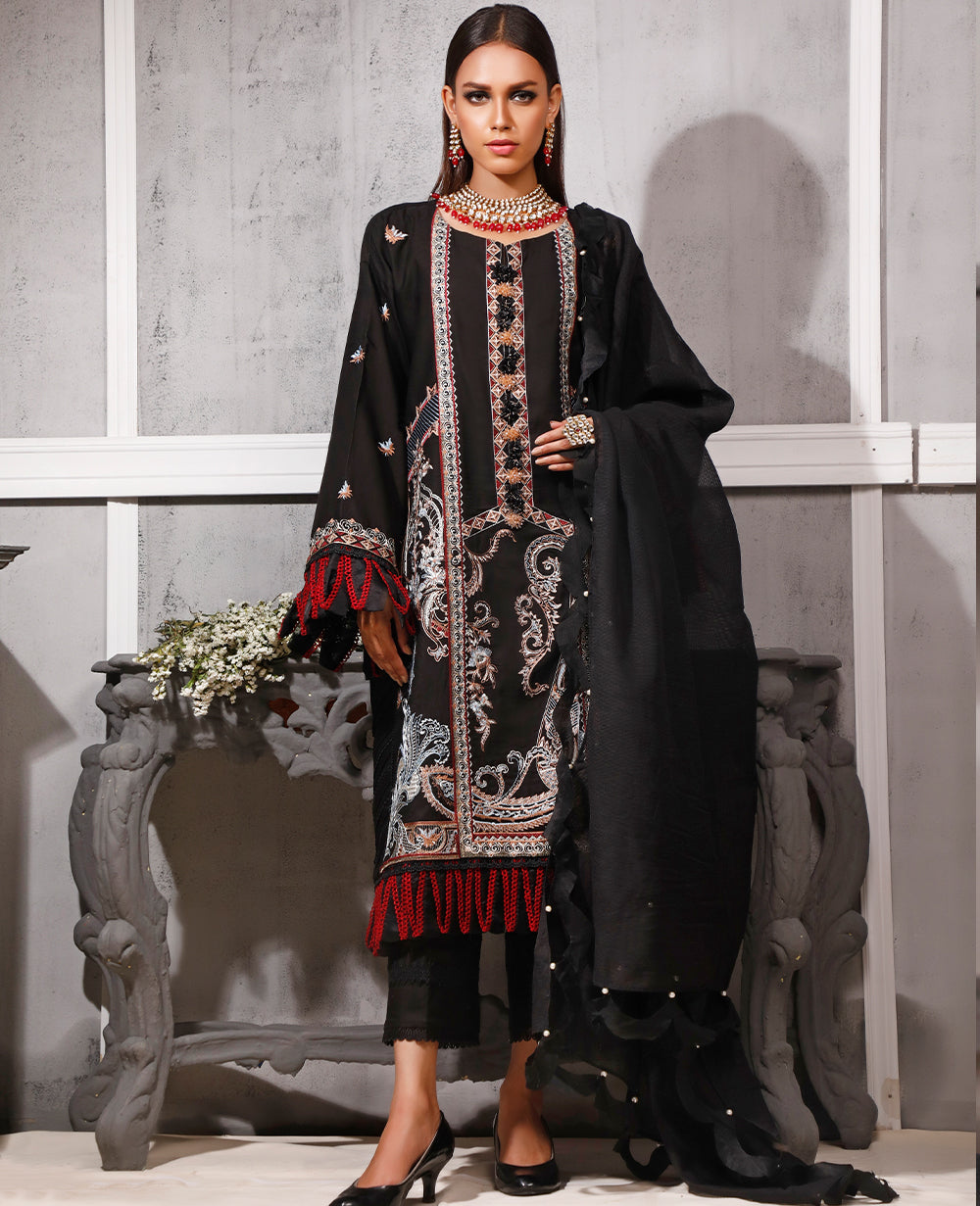 Stitched articles come with trousers tailored to match the unstitched trouser fabric provided. Please note that any appearance of shararas/ghararas in product images is for shoot purposes only unless otherwise specified in product details.