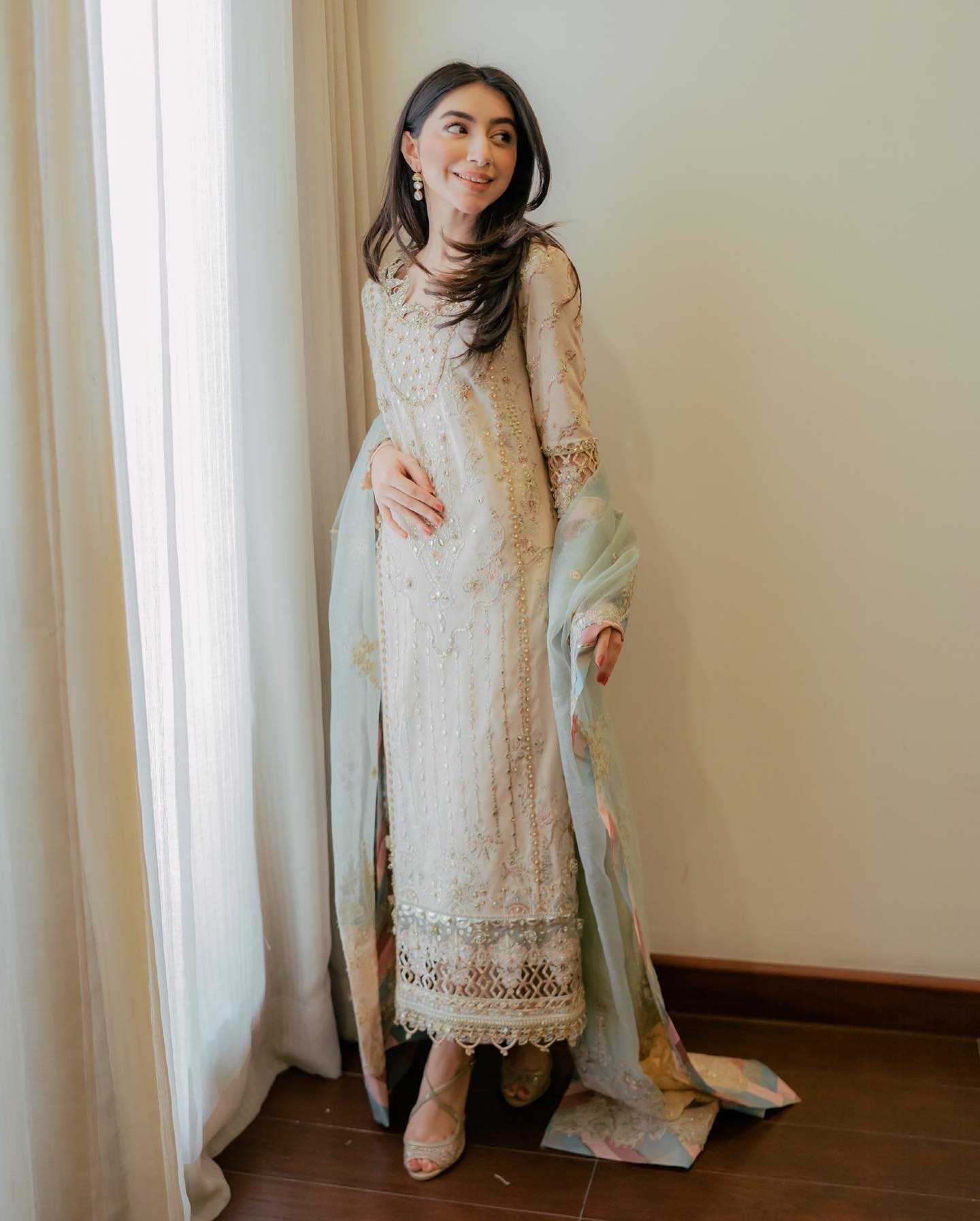 Stitched articles come with trousers tailored to match the unstitched trouser fabric provided. Please note that any appearance of shararas/ghararas in product images is for shoot purposes only unless otherwise specified in product details.