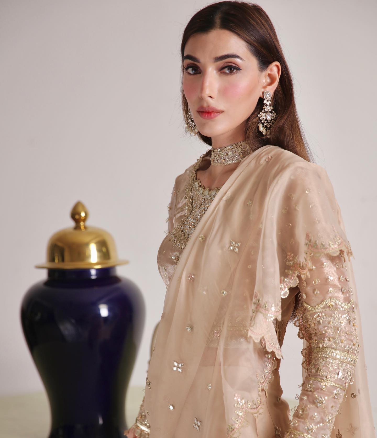 Stitched articles come with trousers tailored to match the unstitched trouser fabric provided. Please note that any appearance of shararas/ghararas in product images is for shoot purposes only unless otherwise specified in product details.