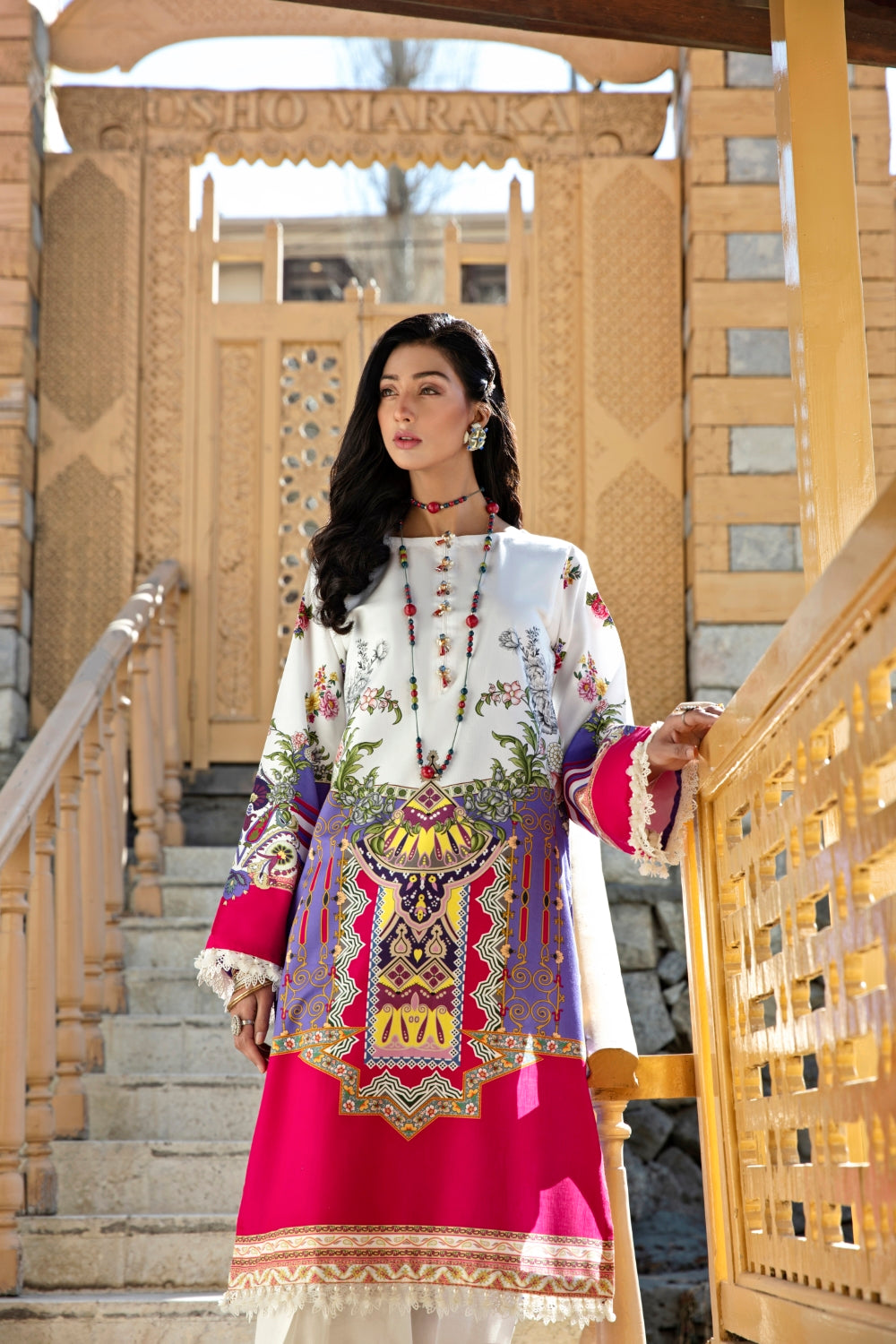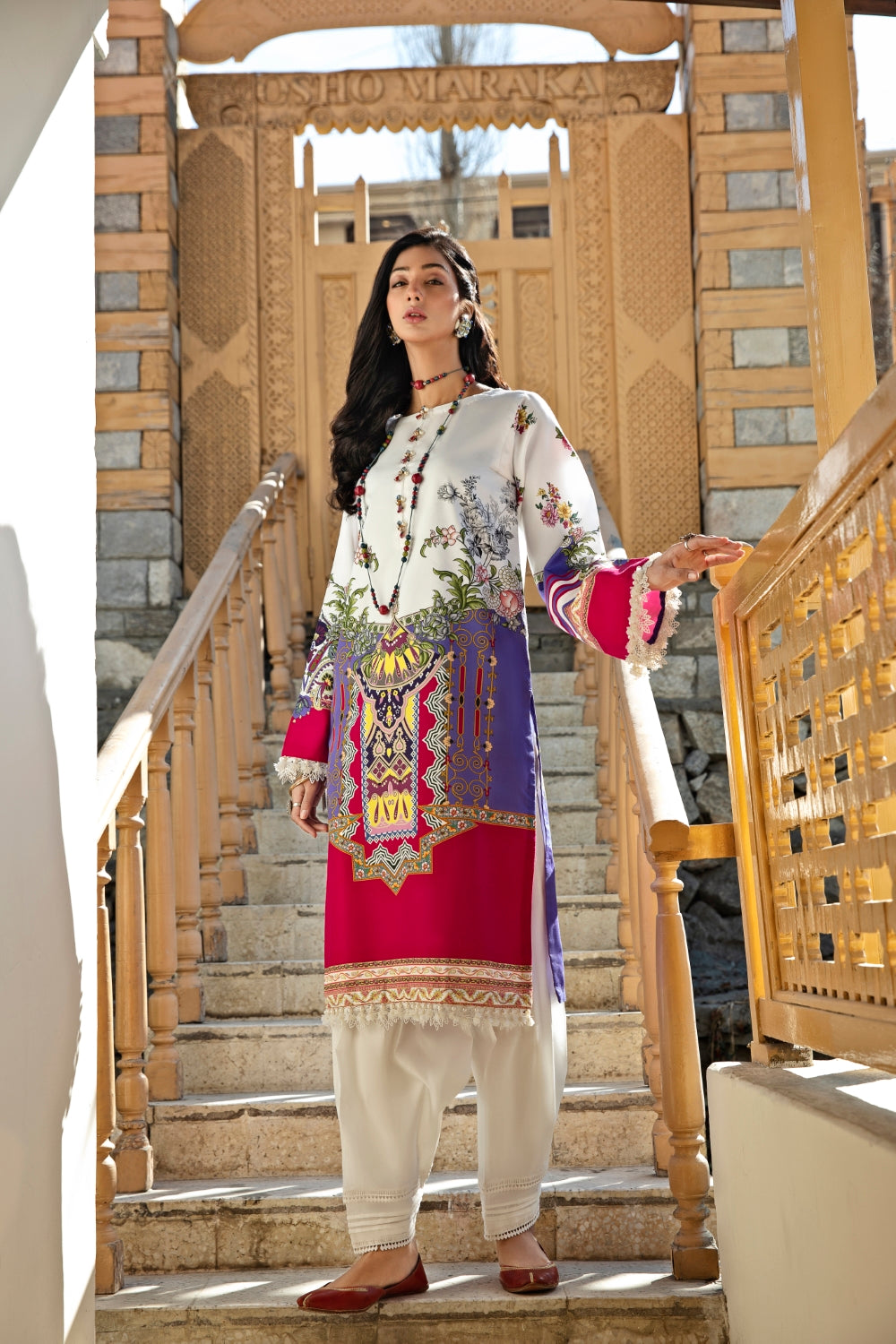 Stitched articles come with trousers tailored to match the unstitched trouser fabric provided. Please note that any appearance of shararas/ghararas in product images is for shoot purposes only unless otherwise specified in product details.