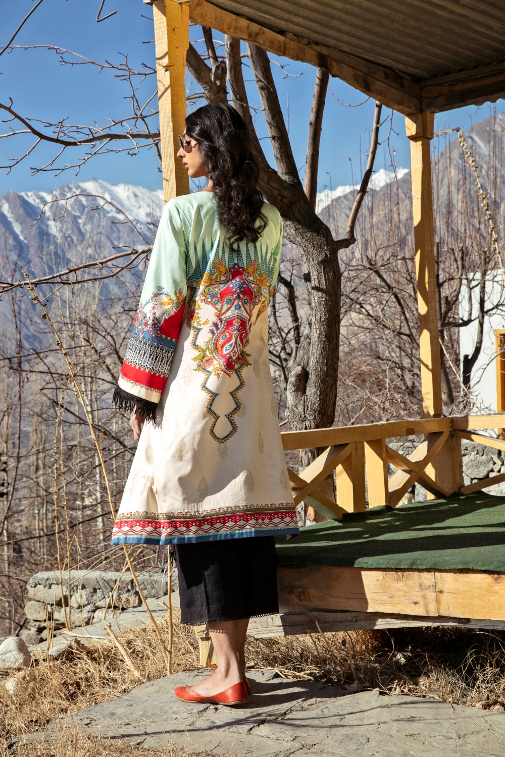Stitched articles come with trousers tailored to match the unstitched trouser fabric provided. Please note that any appearance of shararas/ghararas in product images is for shoot purposes only unless otherwise specified in product details.