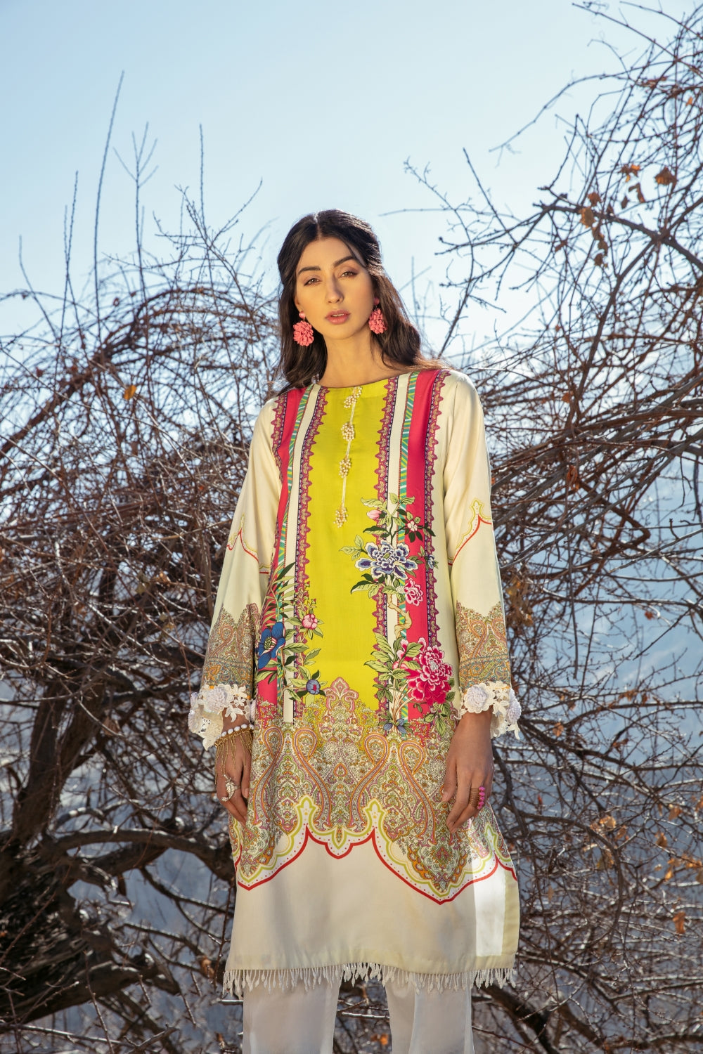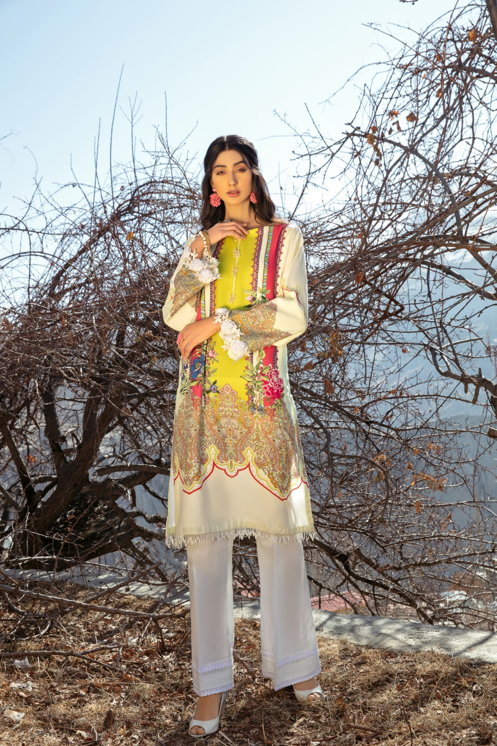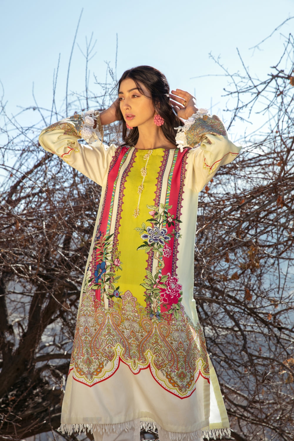 Stitched articles come with trousers tailored to match the unstitched trouser fabric provided. Please note that any appearance of shararas/ghararas in product images is for shoot purposes only unless otherwise specified in product details.