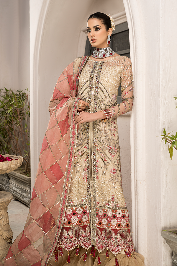 Stitched articles come with trousers tailored to match the unstitched trouser fabric provided. Please note that any appearance of shararas/ghararas in product images is for shoot purposes only unless otherwise specified in product details.