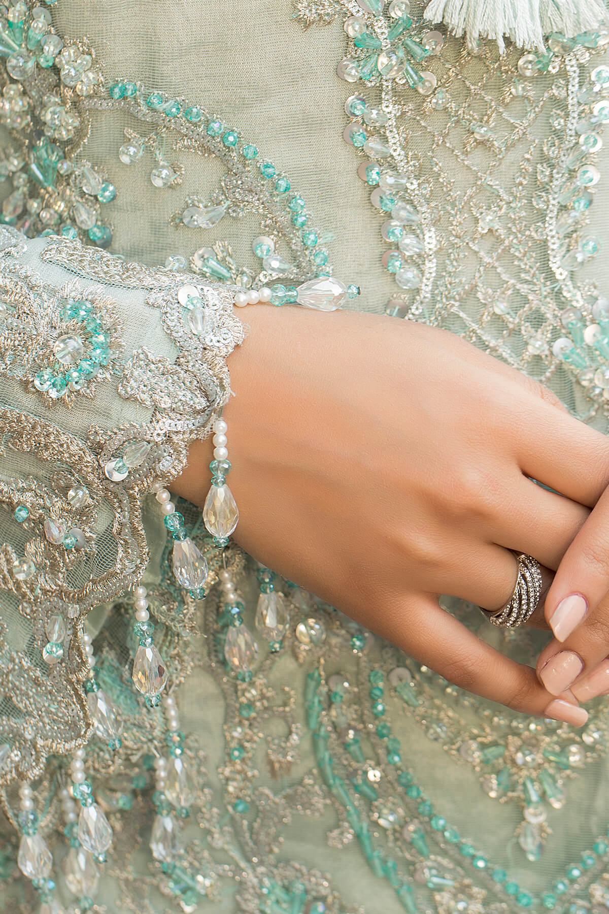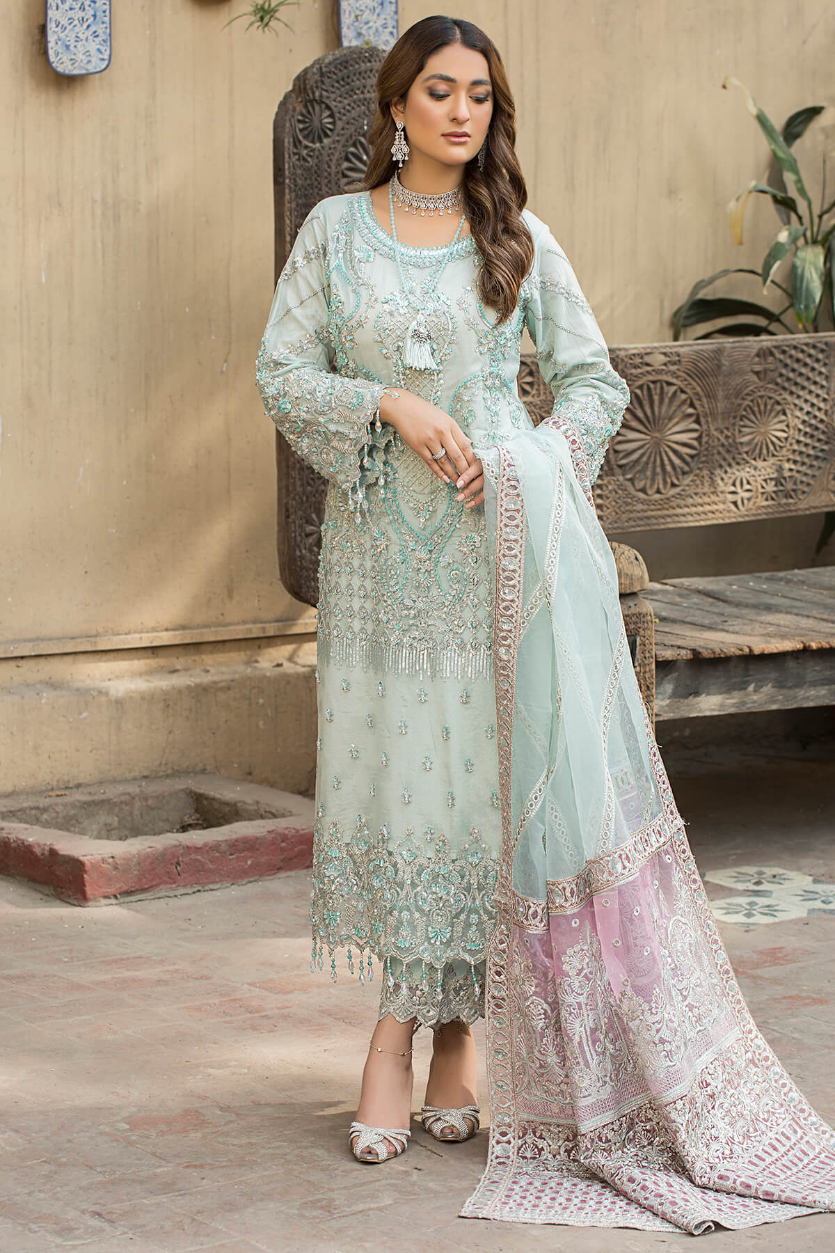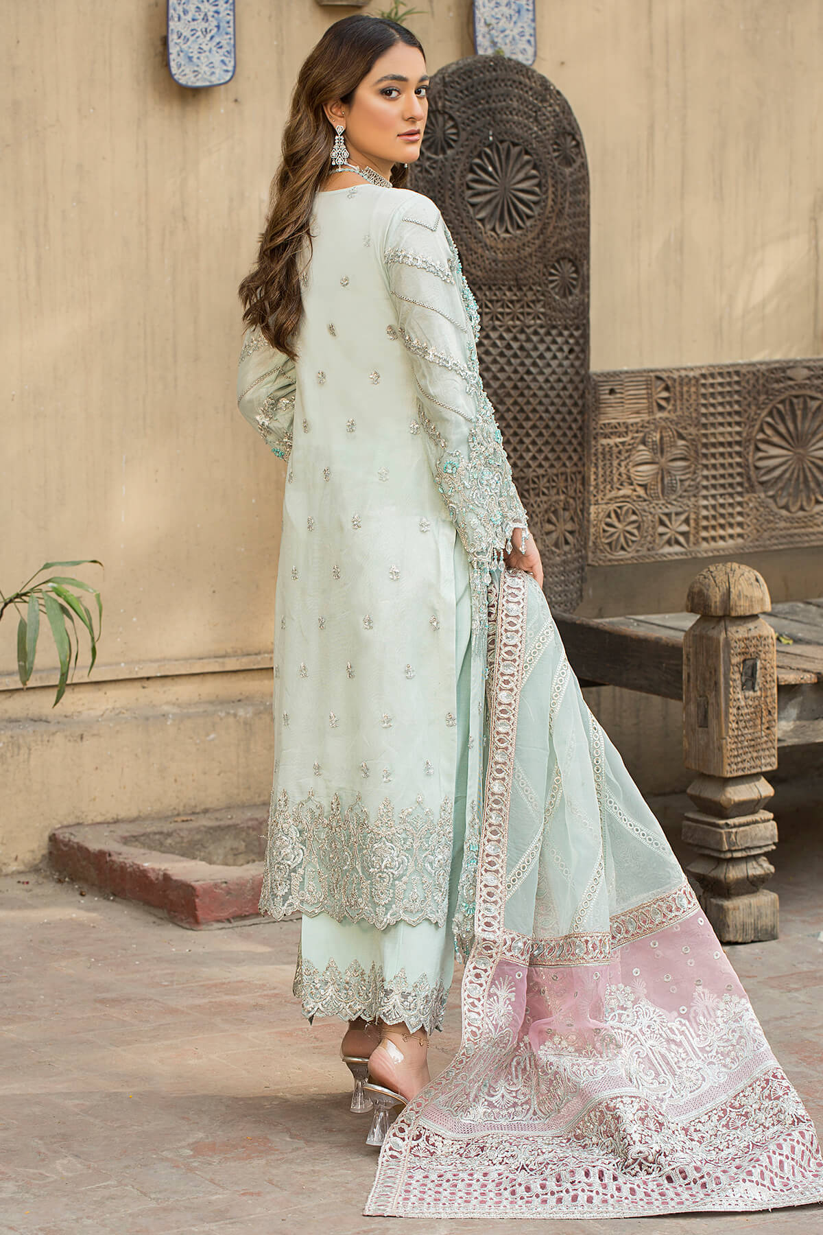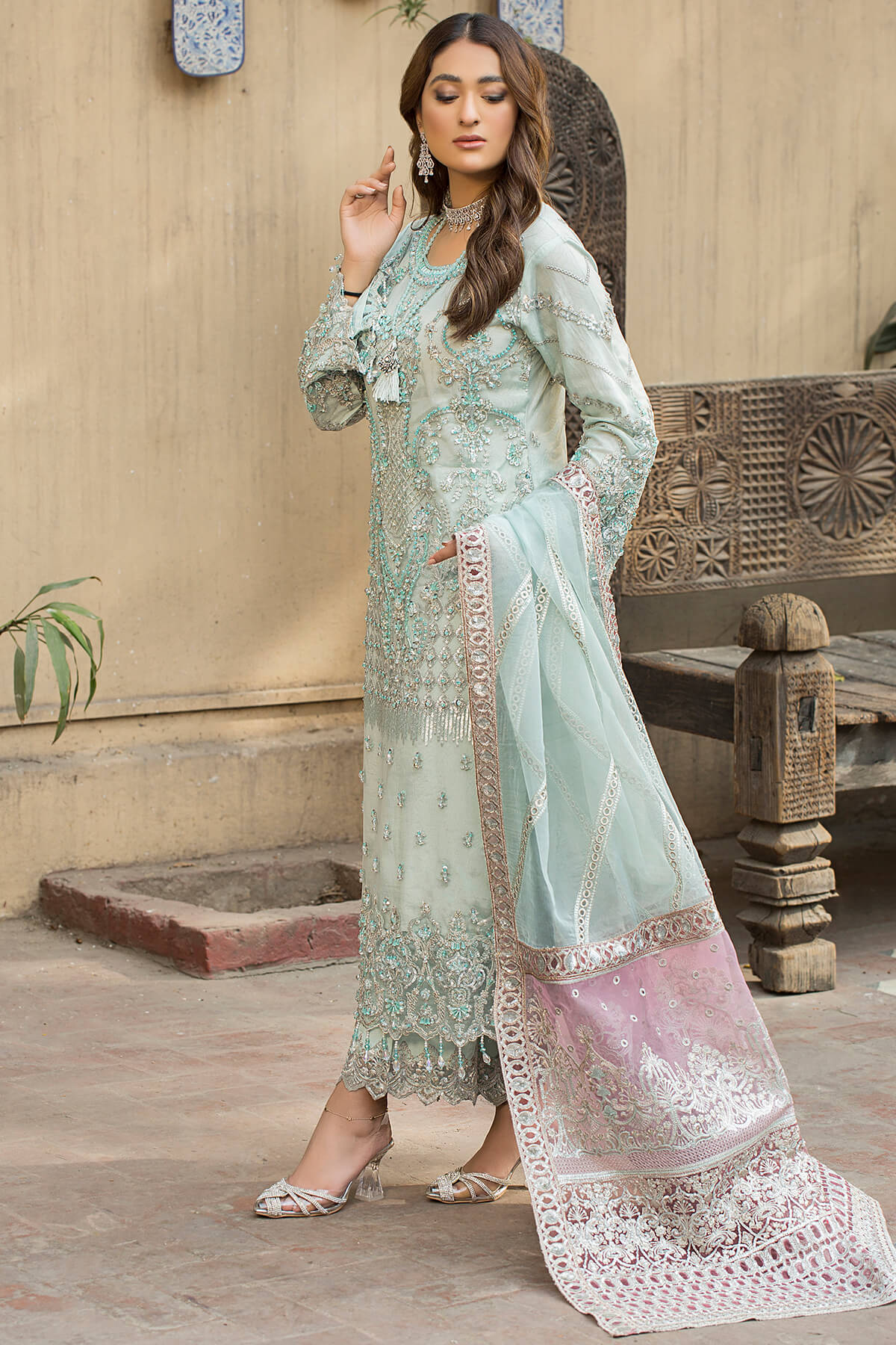 Embroidered organza dupatta.
