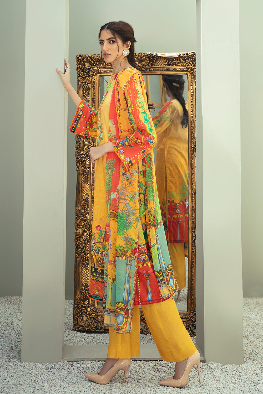 Stitched articles come with trousers tailored to match the unstitched trouser fabric provided. Please note that any appearance of shararas/ghararas in product images is for shoot purposes only unless otherwise specified in product details.