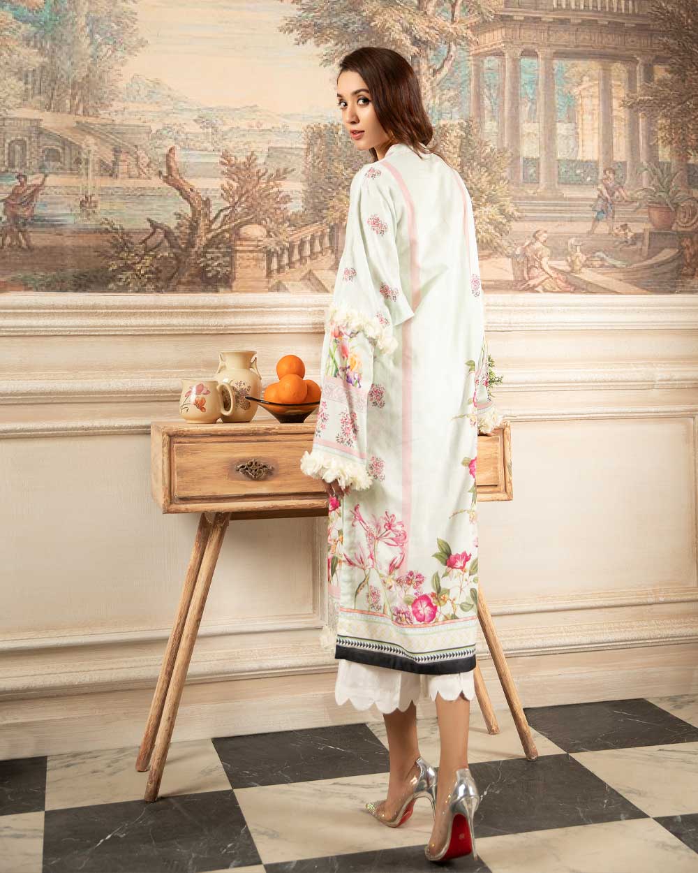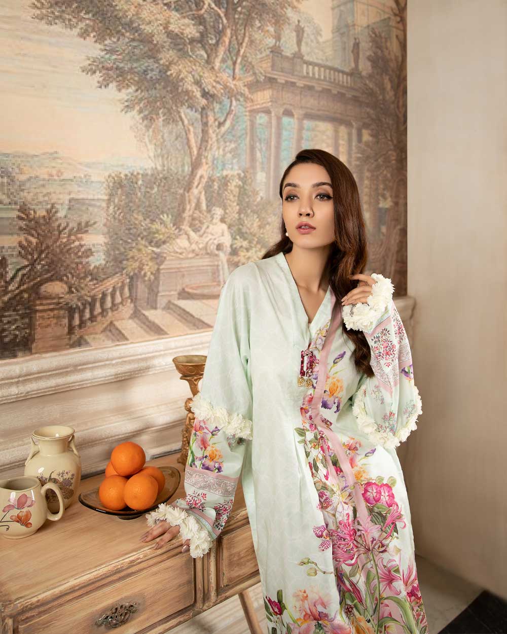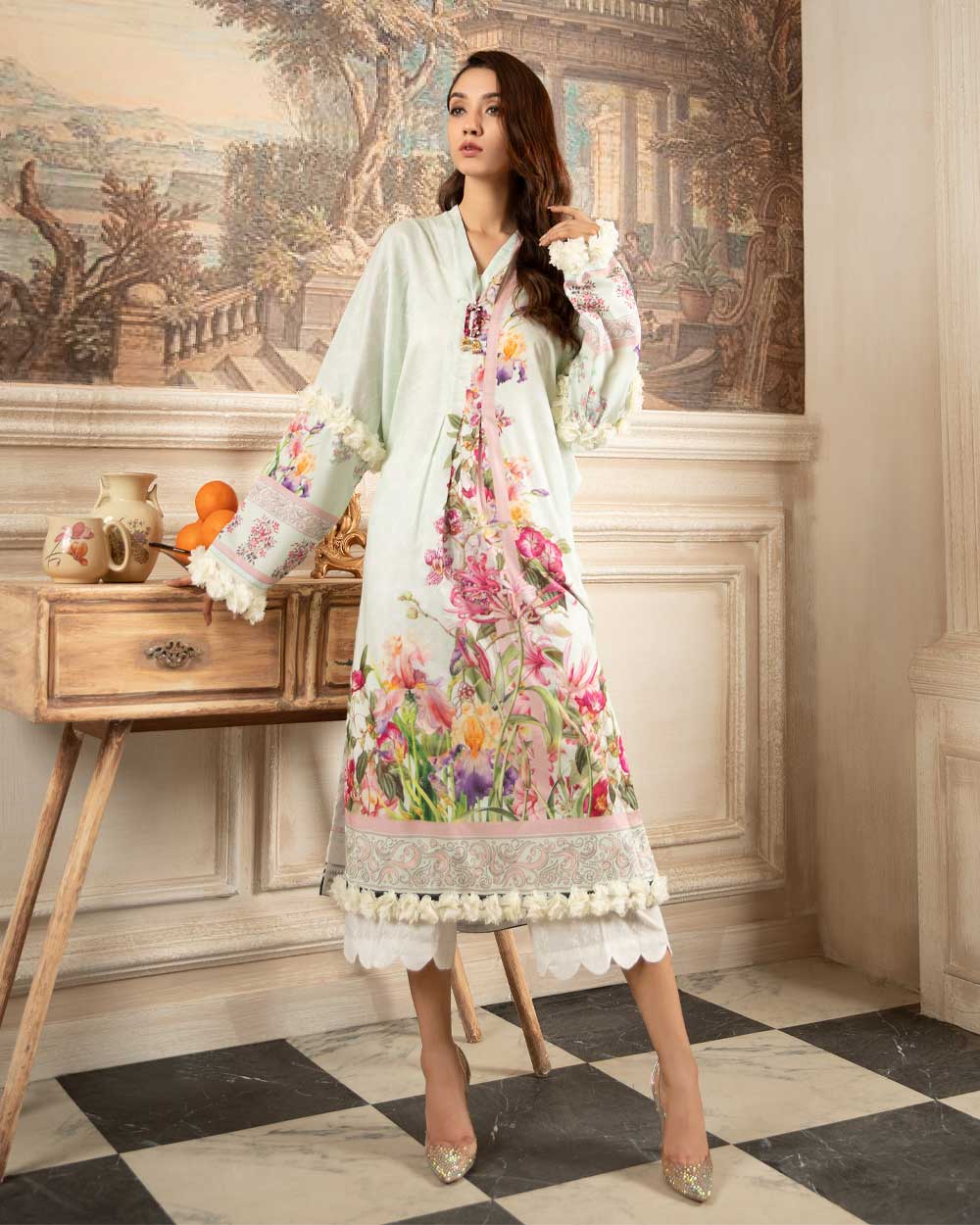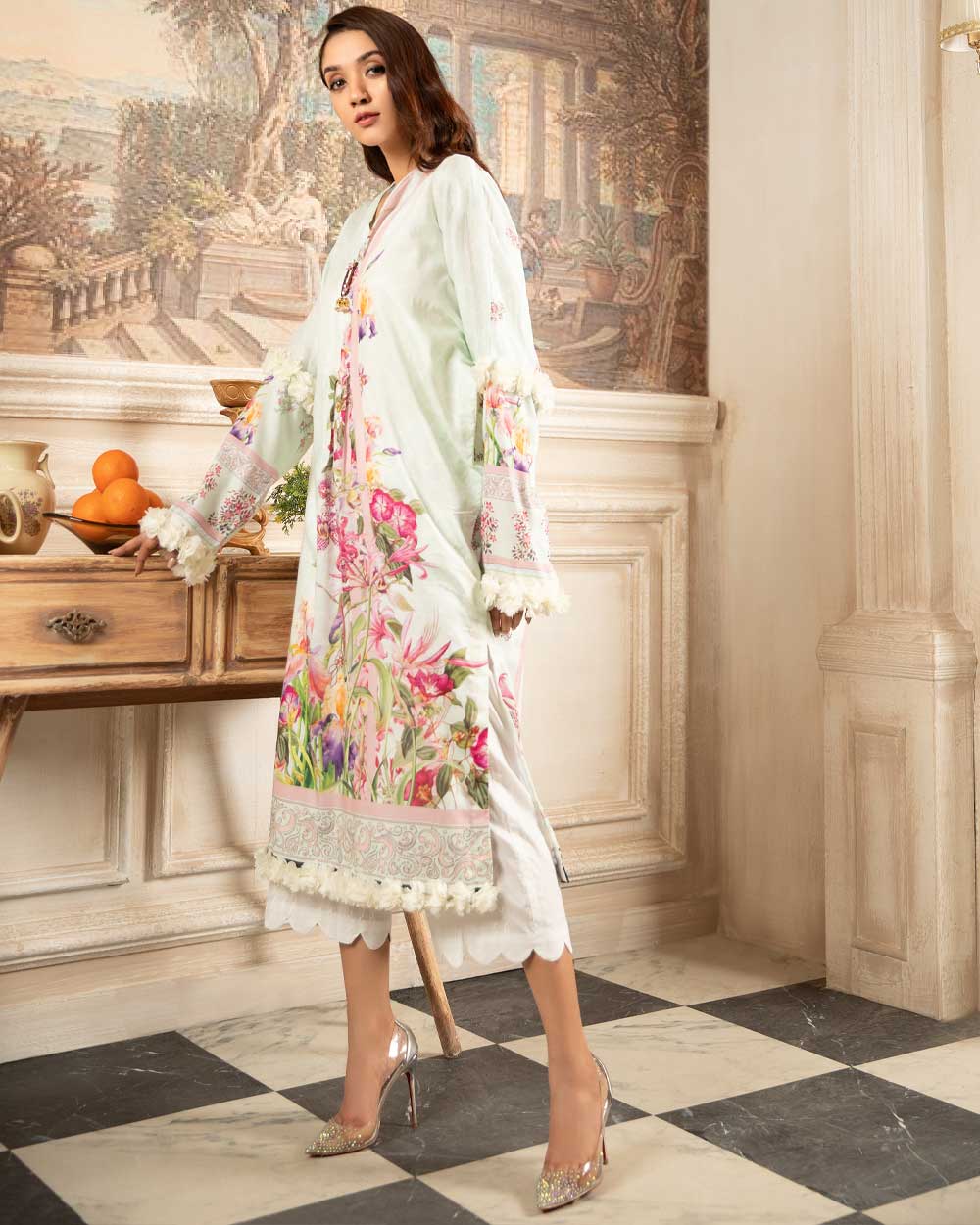Stitched articles come with trousers tailored to match the unstitched trouser fabric provided. Please note that any appearance of shararas/ghararas in product images is for shoot purposes only unless otherwise specified in product details.