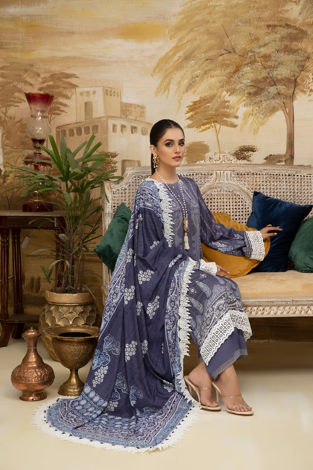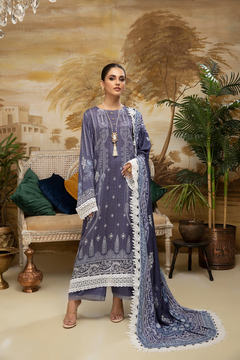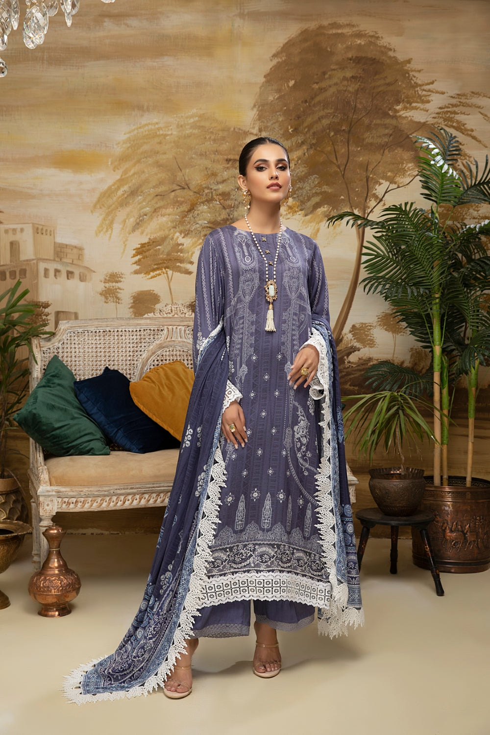 Stitched articles come with trousers tailored to match the unstitched trouser fabric provided. Please note that any appearance of shararas/ghararas in product images is for shoot purposes only unless otherwise specified in product details.