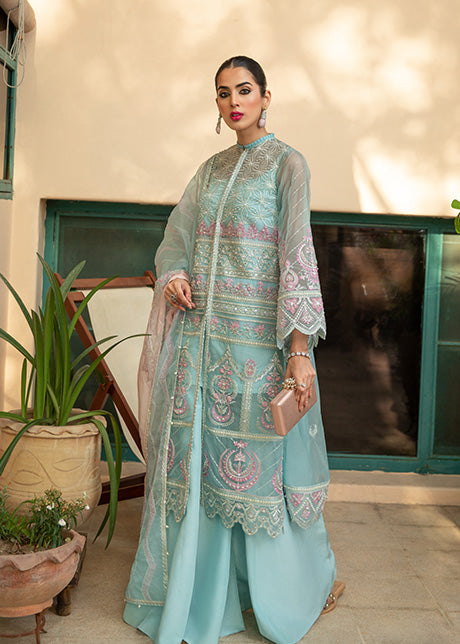 - Front Patti: 2.77 Yard Embroidered and Embellished on Organza Fabric