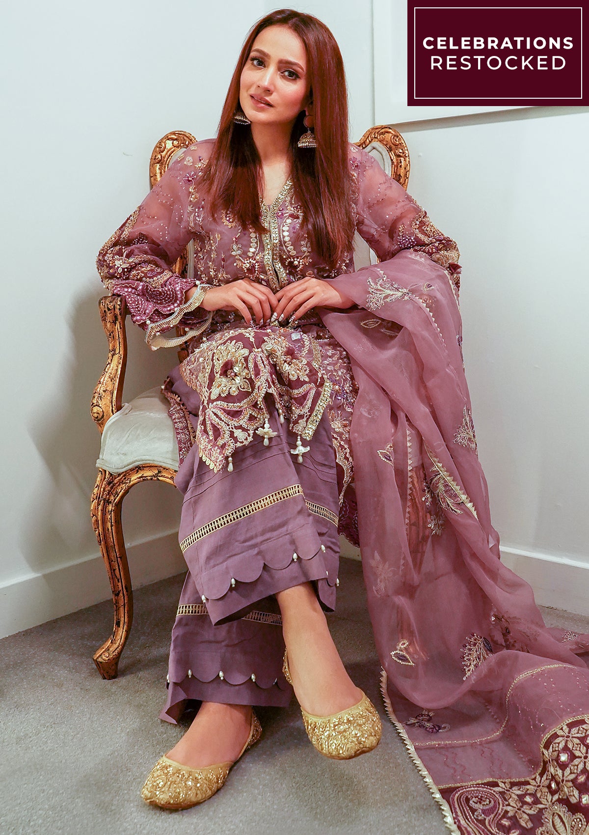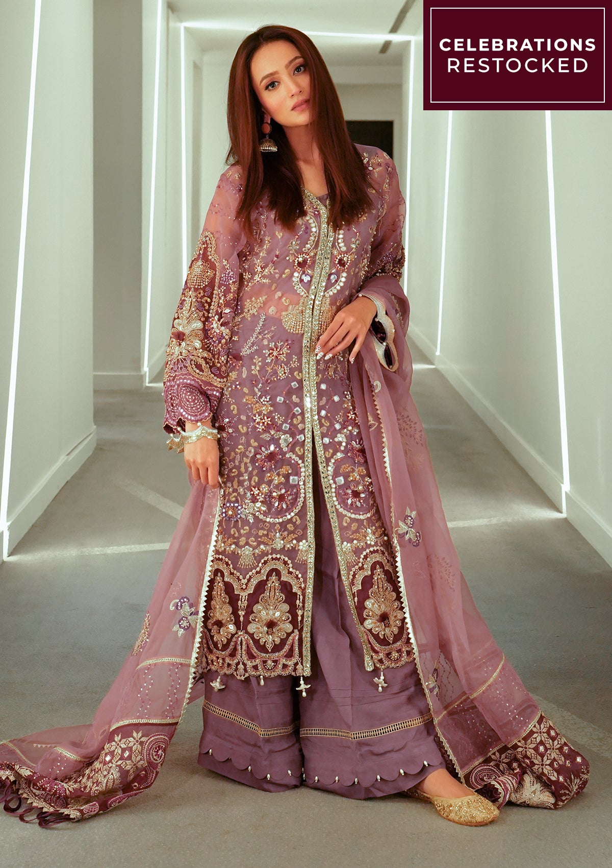 Stitched articles come with trousers tailored to match the unstitched trouser fabric provided. Please note that any appearance of shararas/ghararas in product images is for shoot purposes only unless otherwise specified in product details.