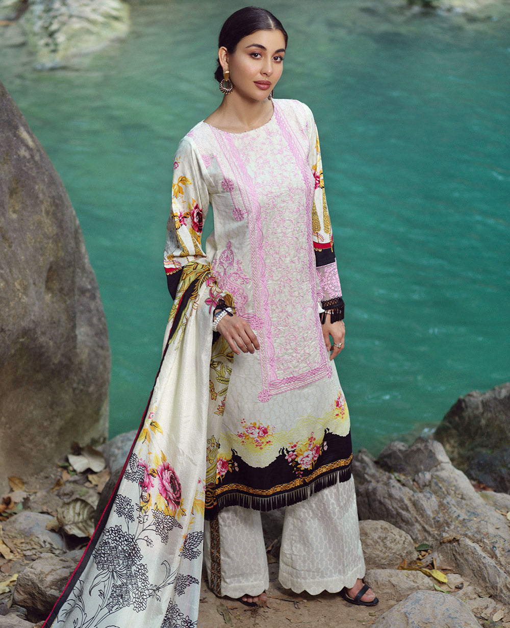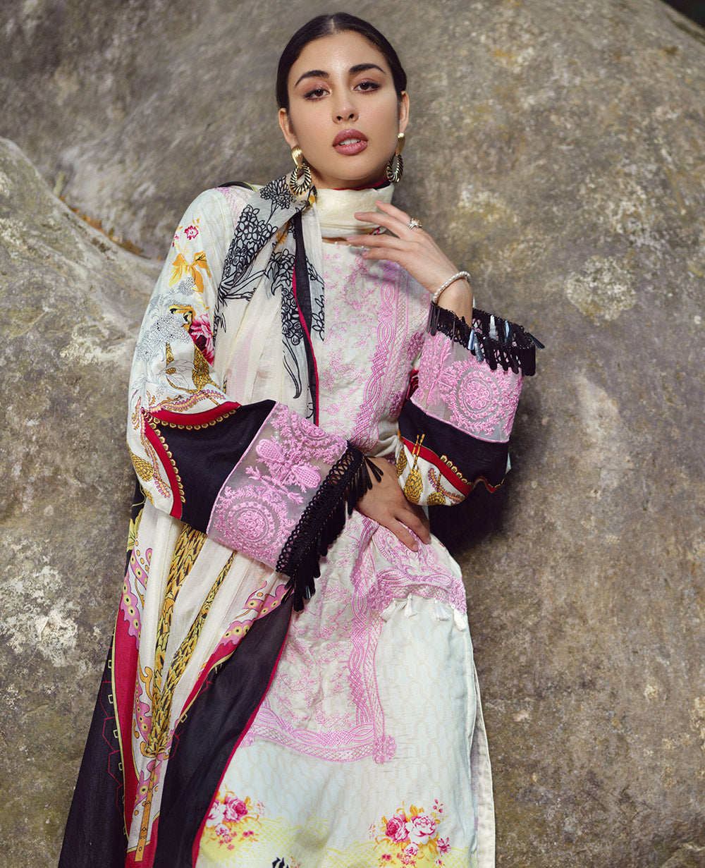 Stitched articles come with trousers tailored to match the unstitched trouser fabric provided. Please note that any appearance of shararas/ghararas in product images is for shoot purposes only unless otherwise specified in product details.