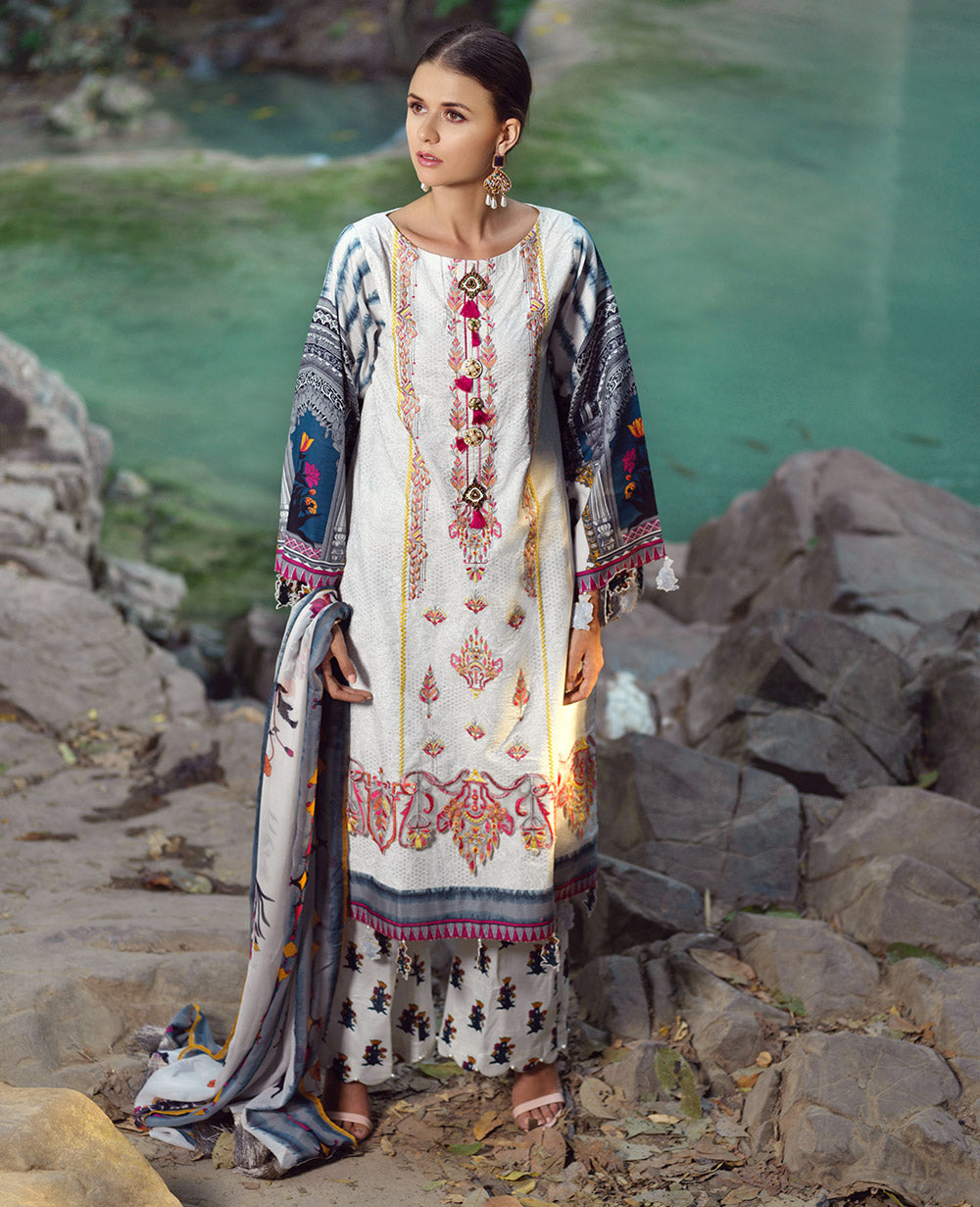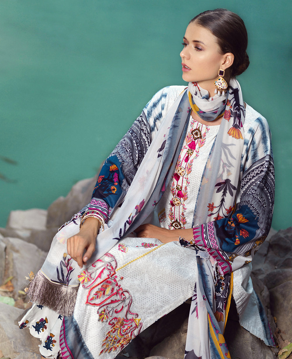 Lawn Paste Printed Emb Shirt : 3.15 Mtr