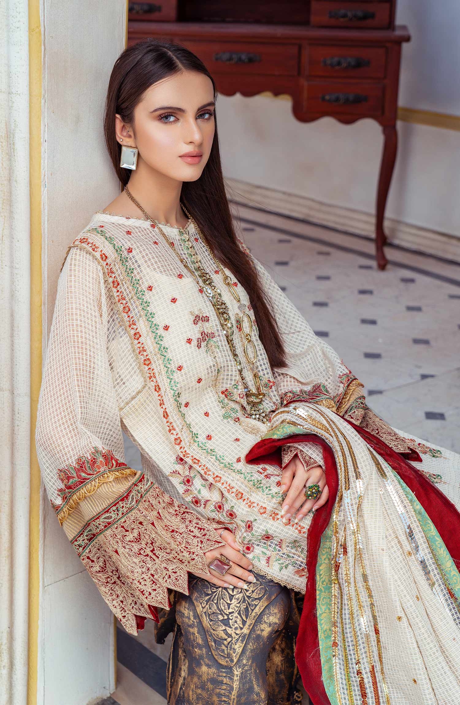 Stitched articles come with trousers tailored to match the unstitched trouser fabric provided. Please note that any appearance of shararas/ghararas in product images is for shoot purposes only unless otherwise specified in product details.