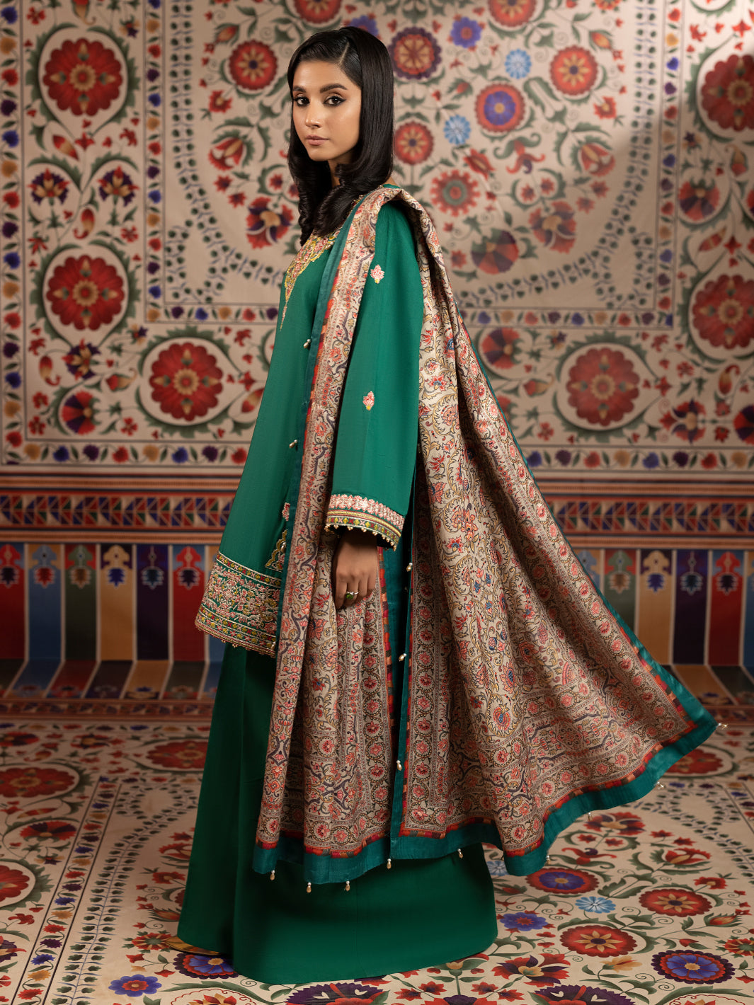 - Embroidered sleeves on slub khaddar 1 M