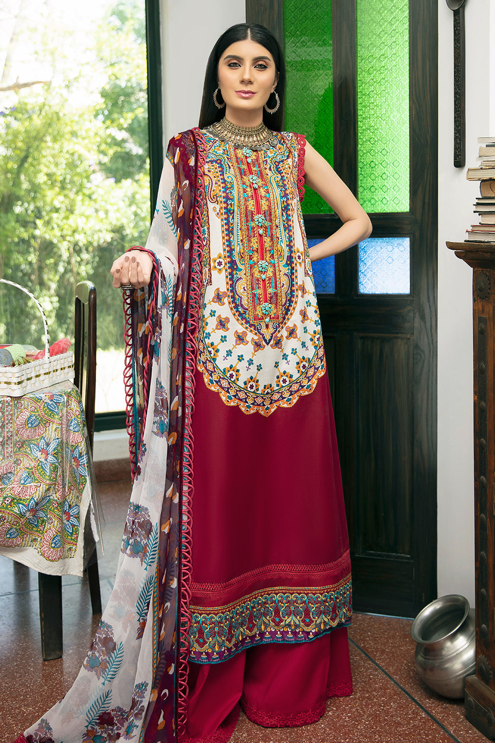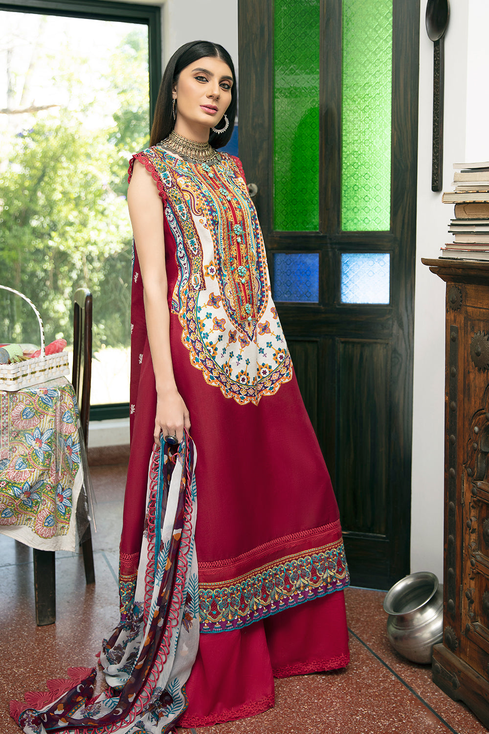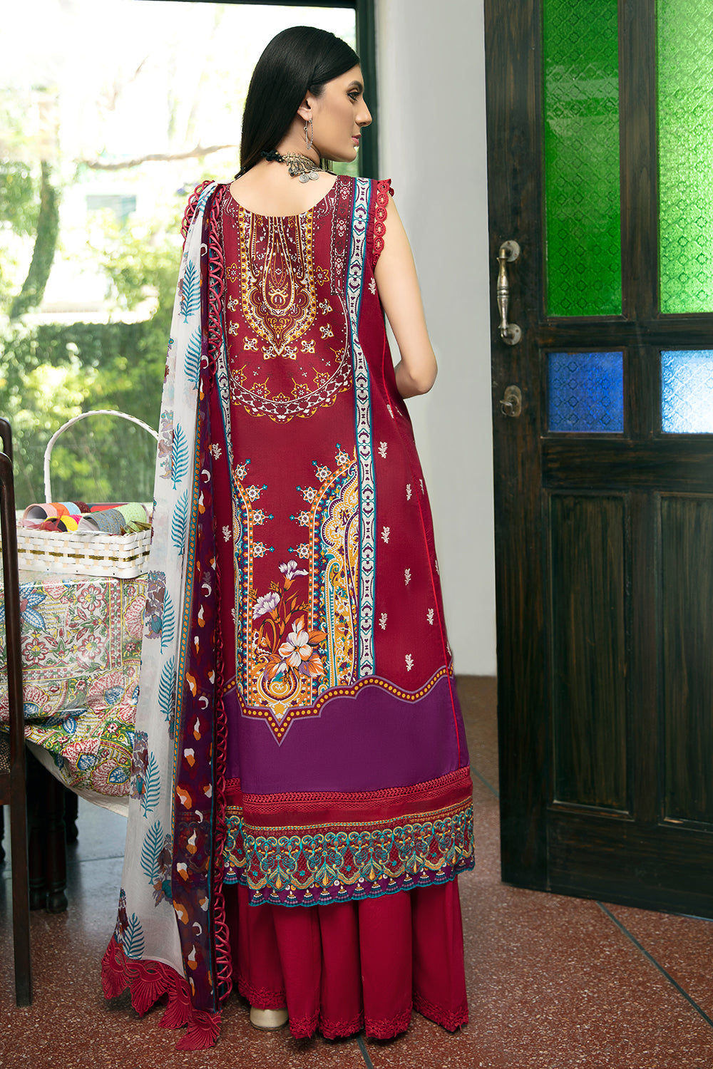 Stitched articles come with trousers tailored to match the unstitched trouser fabric provided. Please note that any appearance of shararas/ghararas in product images is for shoot purposes only unless otherwise specified in product details.