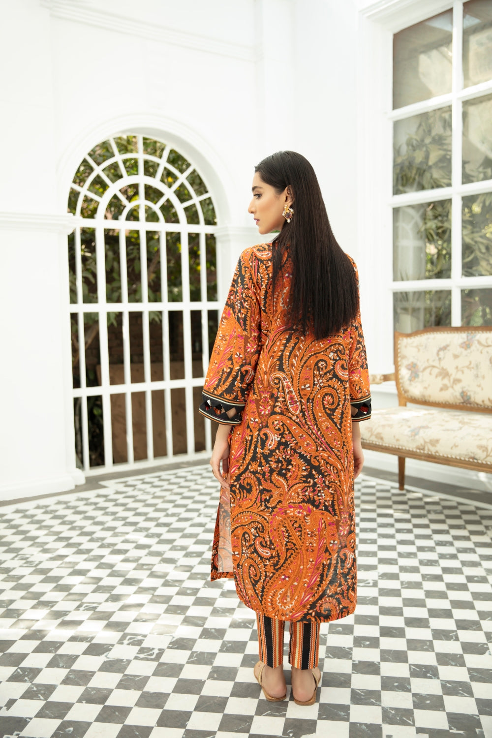 Stitched articles come with trousers tailored to match the unstitched trouser fabric provided. Please note that any appearance of shararas/ghararas in product images is for shoot purposes only unless otherwise specified in product details.