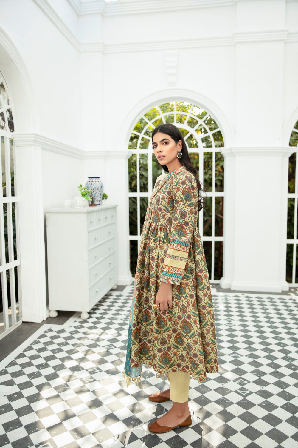 Stitched articles come with trousers tailored to match the unstitched trouser fabric provided. Please note that any appearance of shararas/ghararas in product images is for shoot purposes only unless otherwise specified in product details.