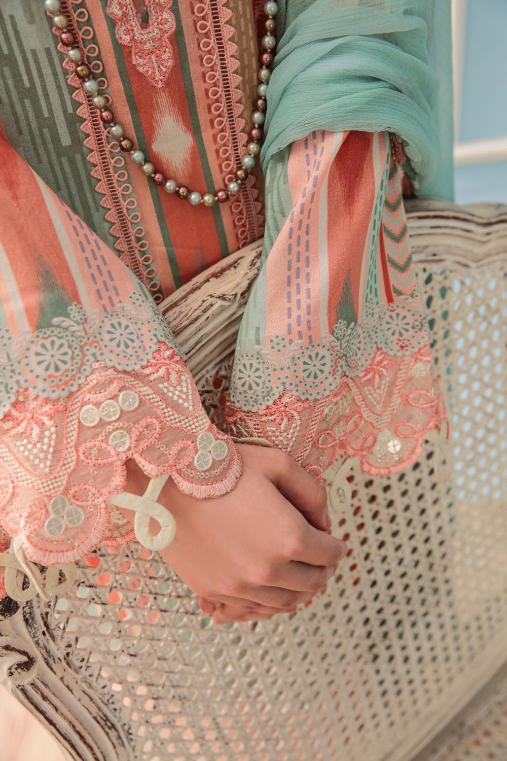 Stitched articles come with trousers tailored to match the unstitched trouser fabric provided. Please note that any appearance of shararas/ghararas in product images is for shoot purposes only unless otherwise specified in product details.