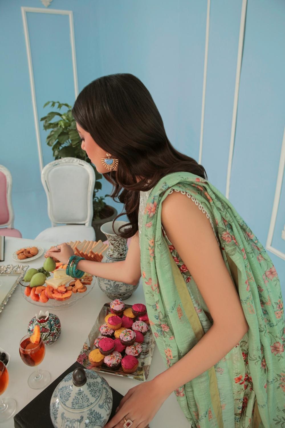 3PC Unstitched Printed+Embroidered Lawn Shirt | Printed Manar Dupatta | Cambric Cotton Trouser