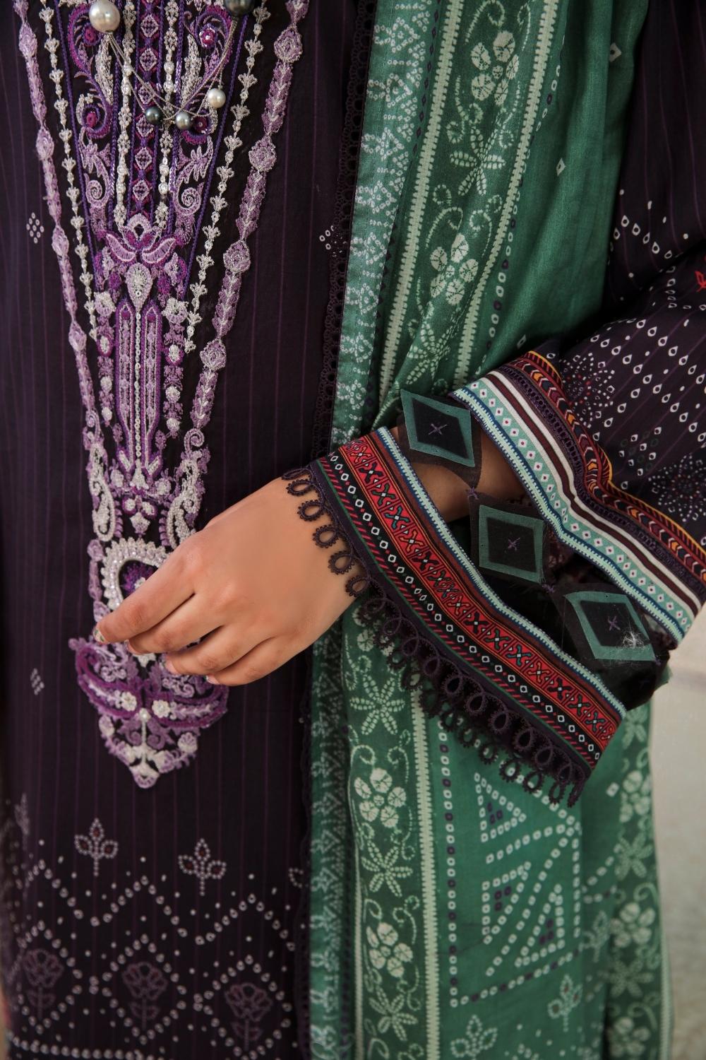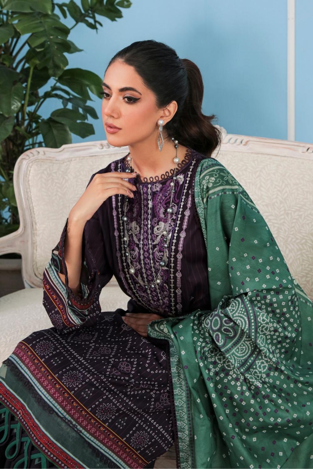 3PC Unstitched Printed + Embroidered Lawn Suit