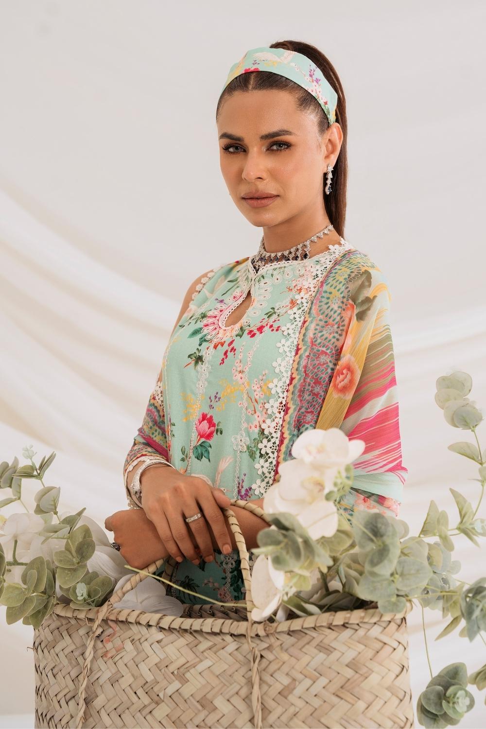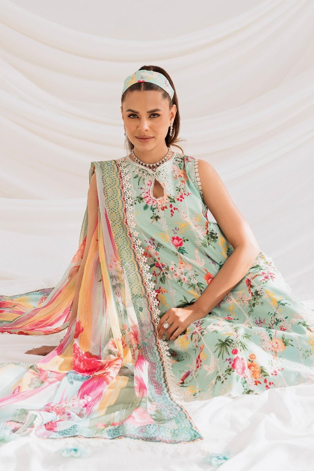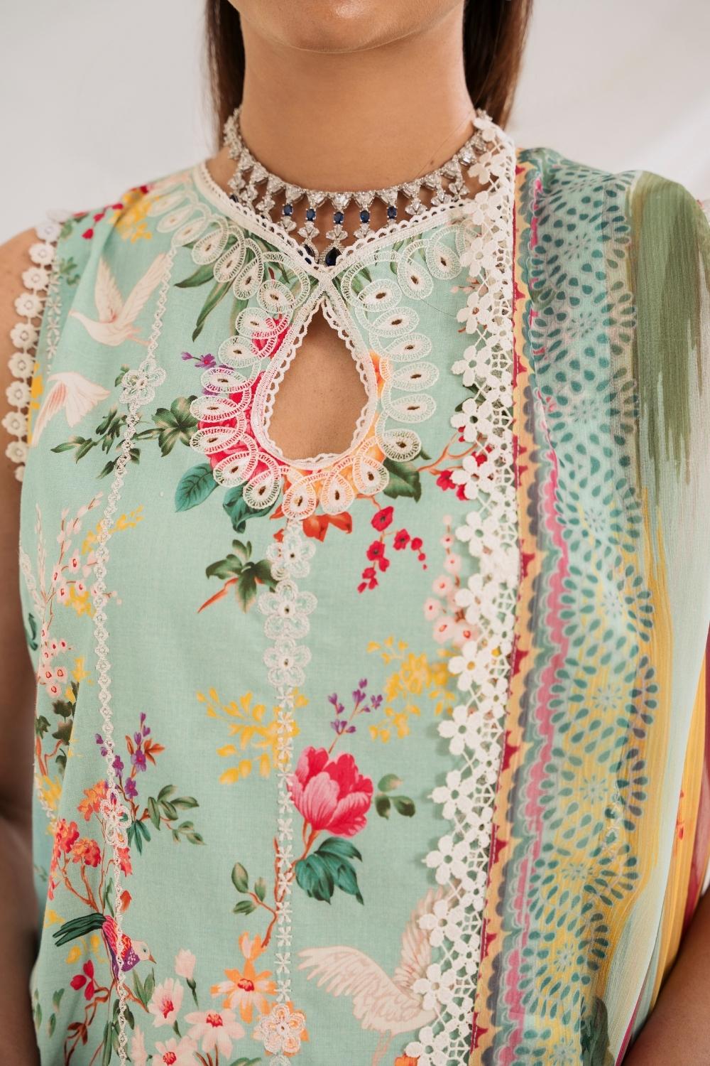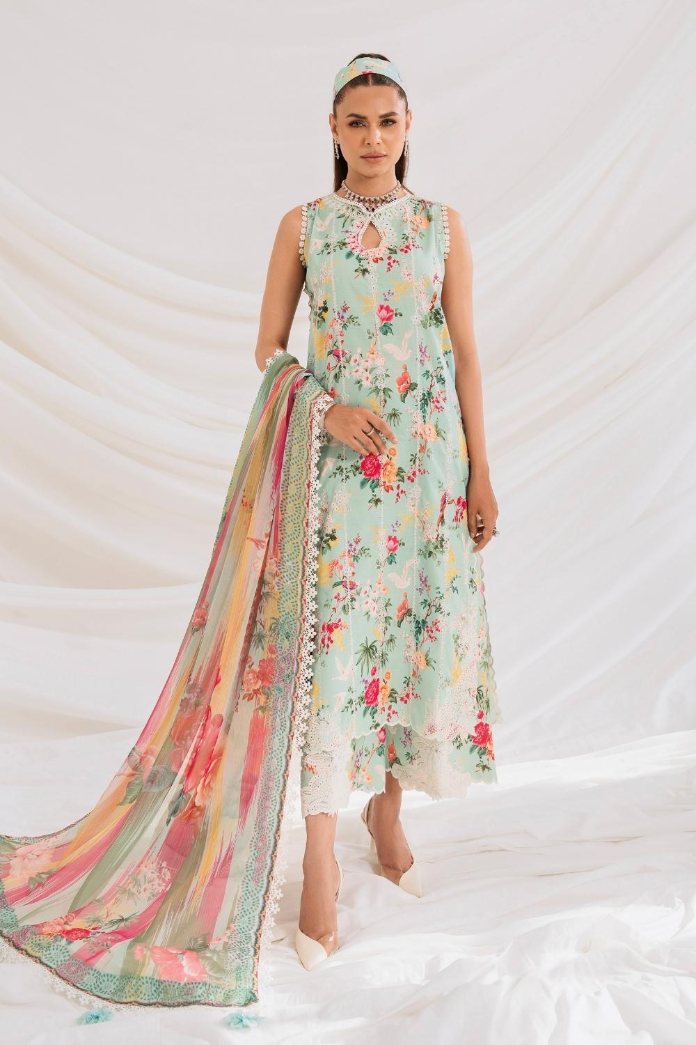 3PC Unstitched | Embroidered Lawn Suit | Chiffon Dupatta