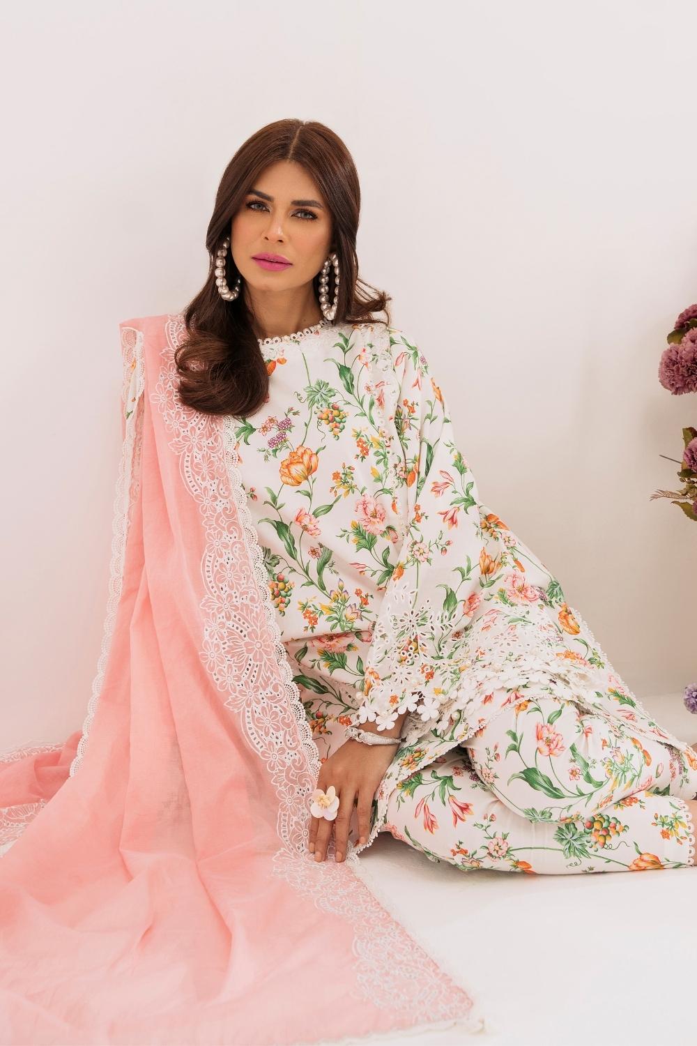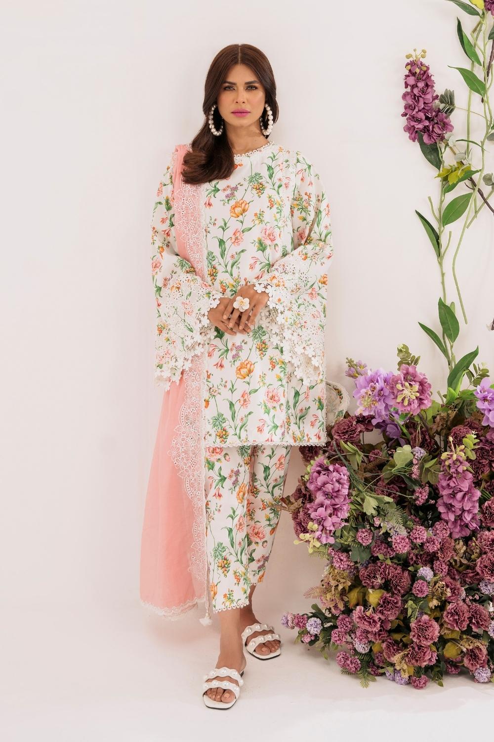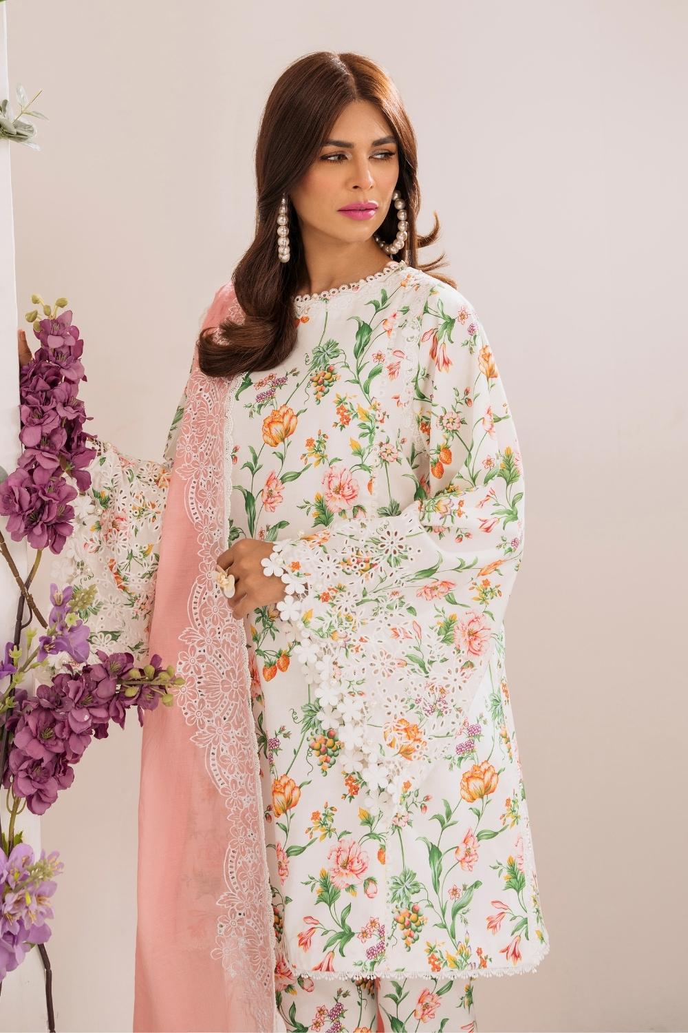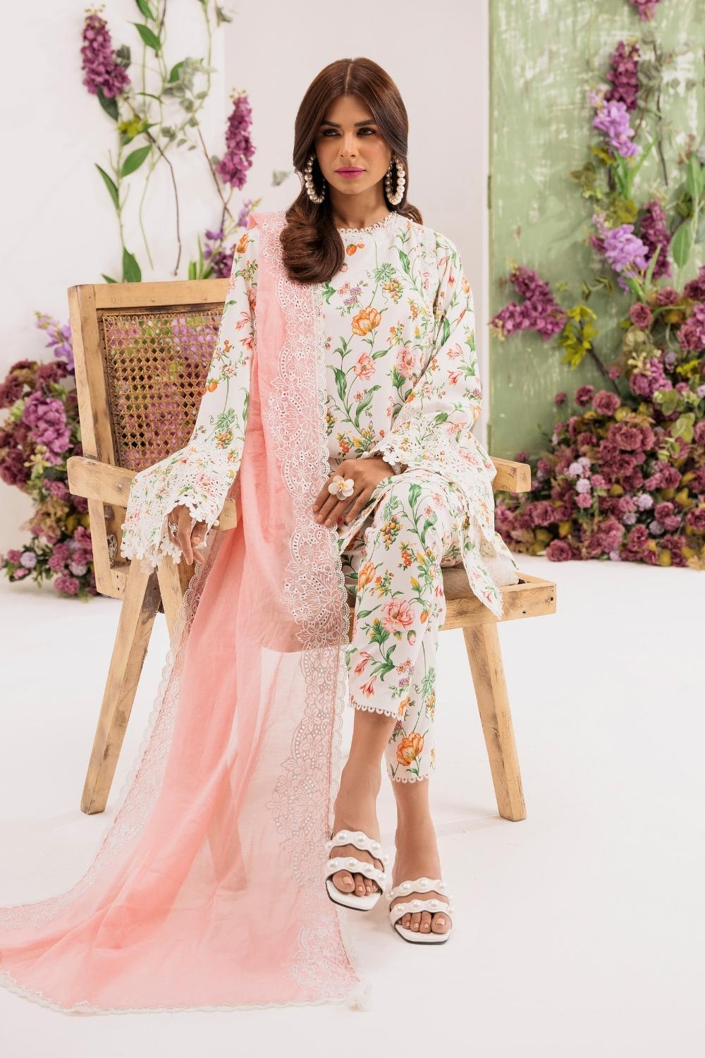 3PC Unstitched | Embroidered Lawn Suit | Silko Dupatta