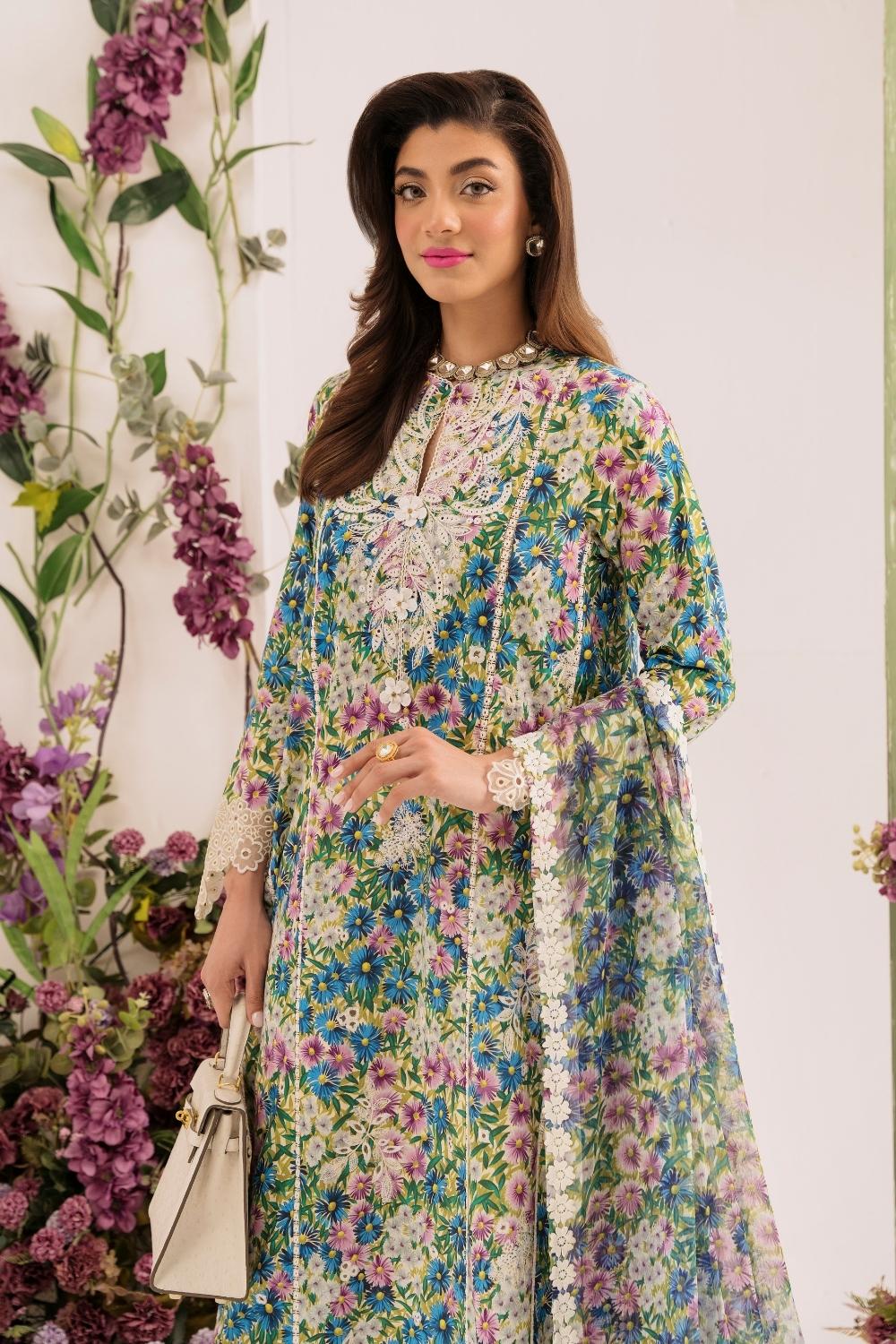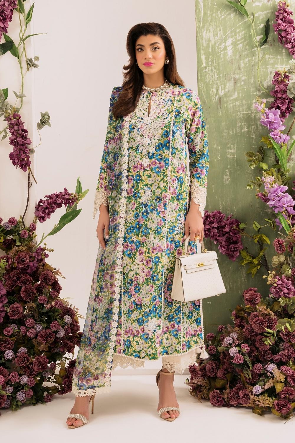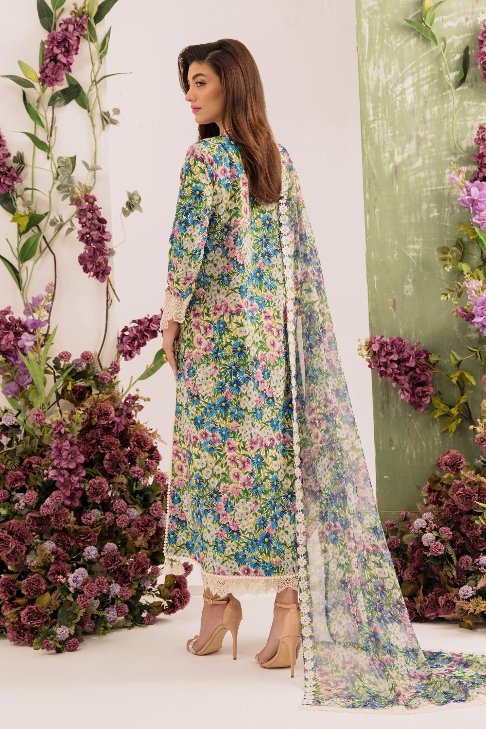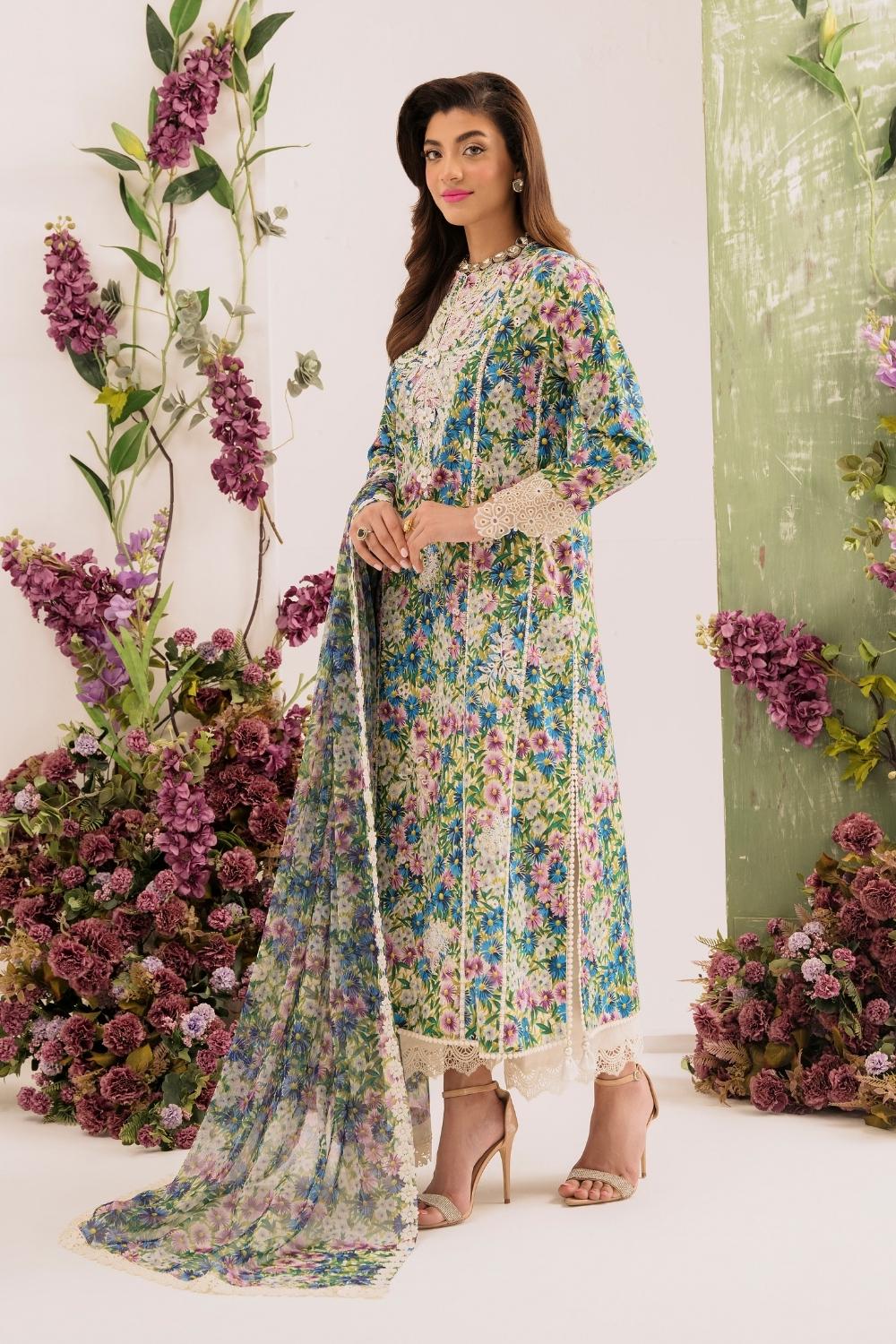 3PC Unstitched | Embroidered Lawn Suit | Chiffon Dupatta