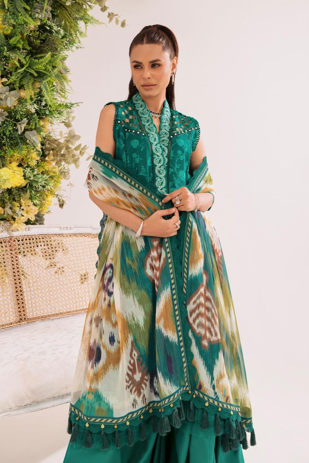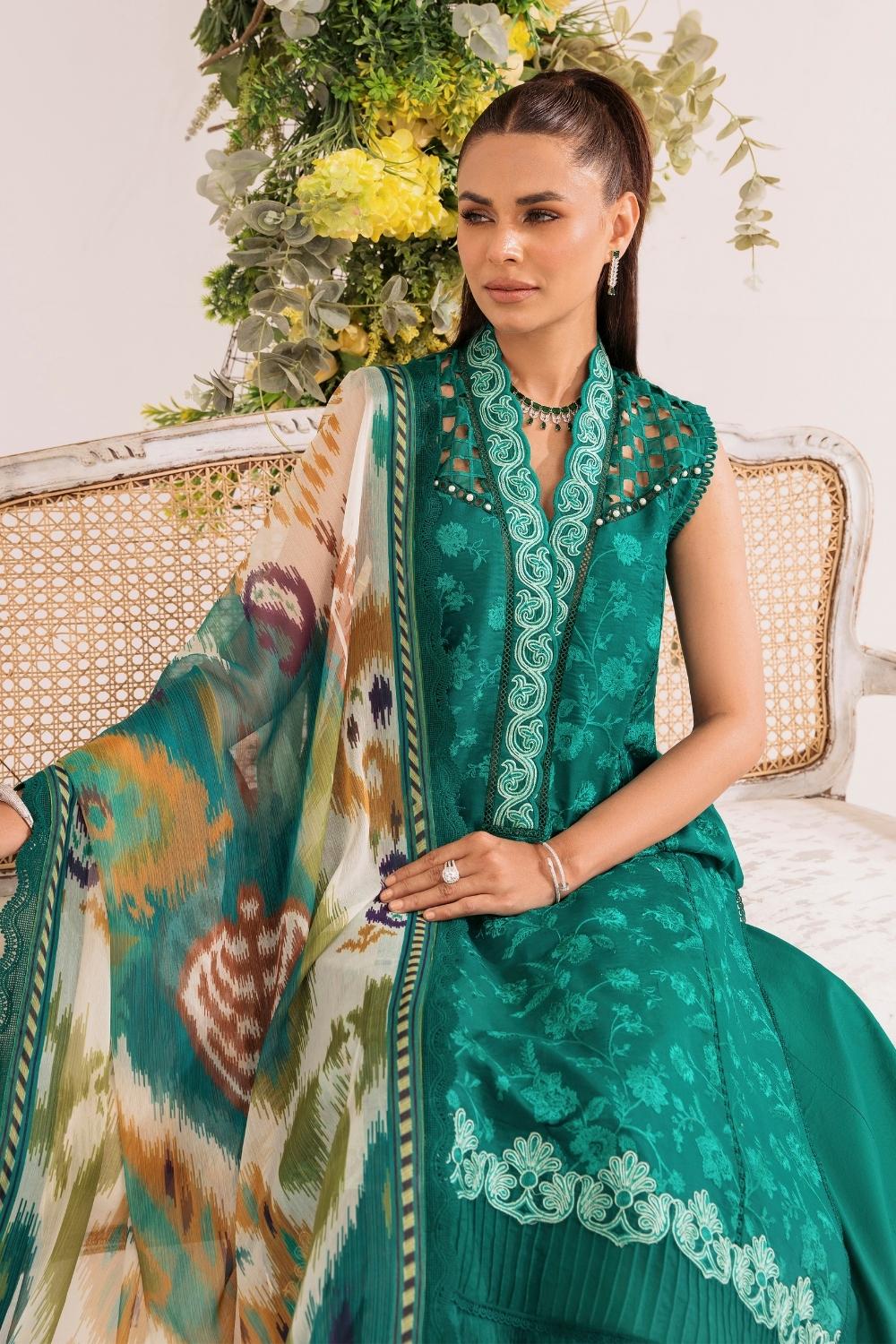 3PC Unstitched | Embroidered Lawn Suit | Chiffon Dupatta