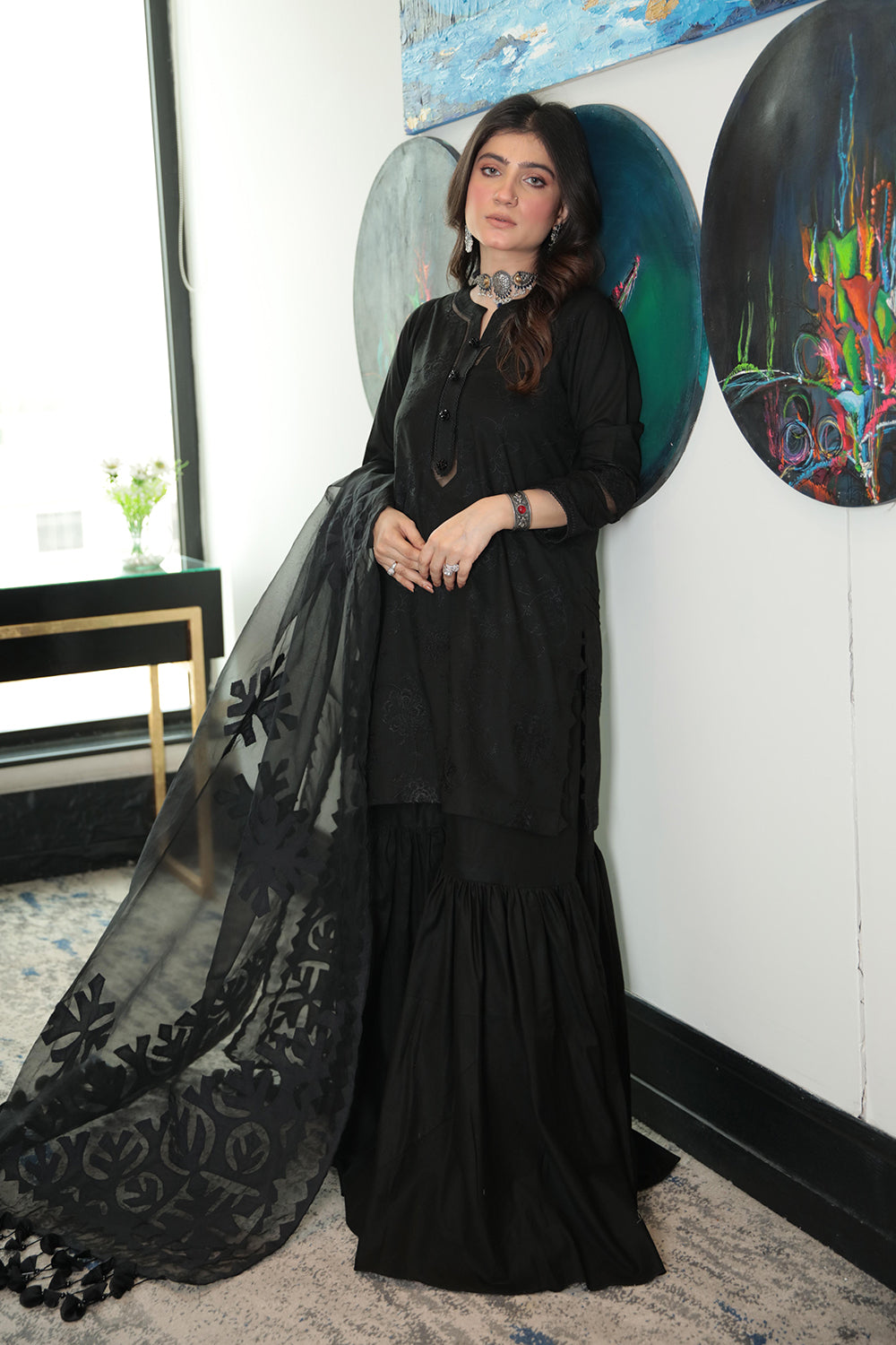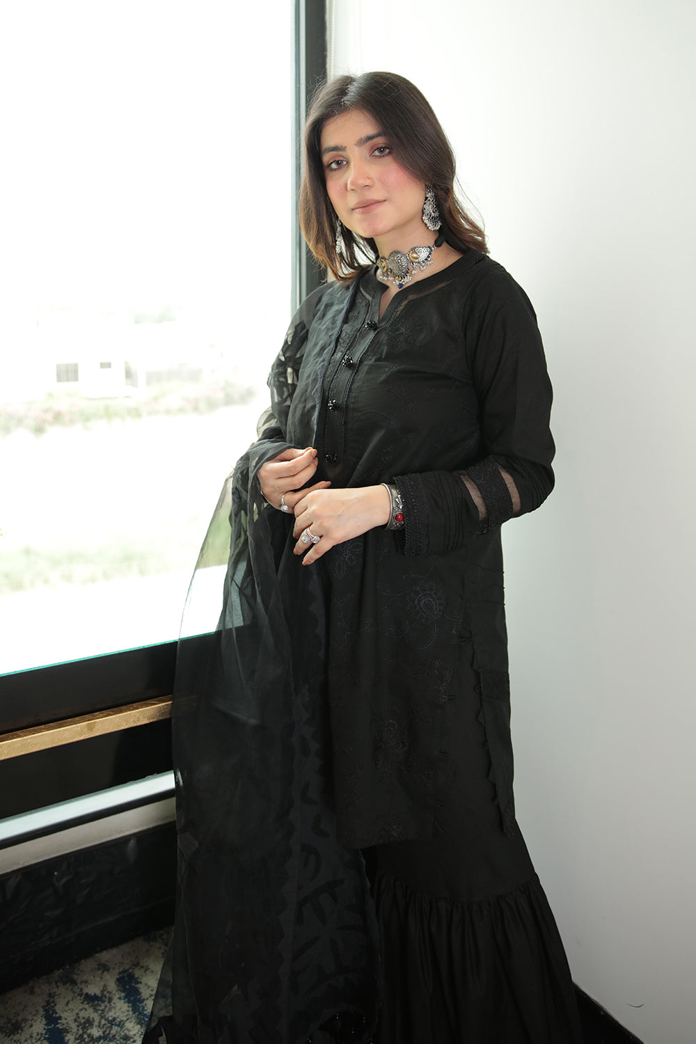 Stitched articles come with trousers tailored to match the unstitched trouser fabric provided. Please note that any appearance of shararas/ghararas in product images is for shoot purposes only unless otherwise specified in product details.