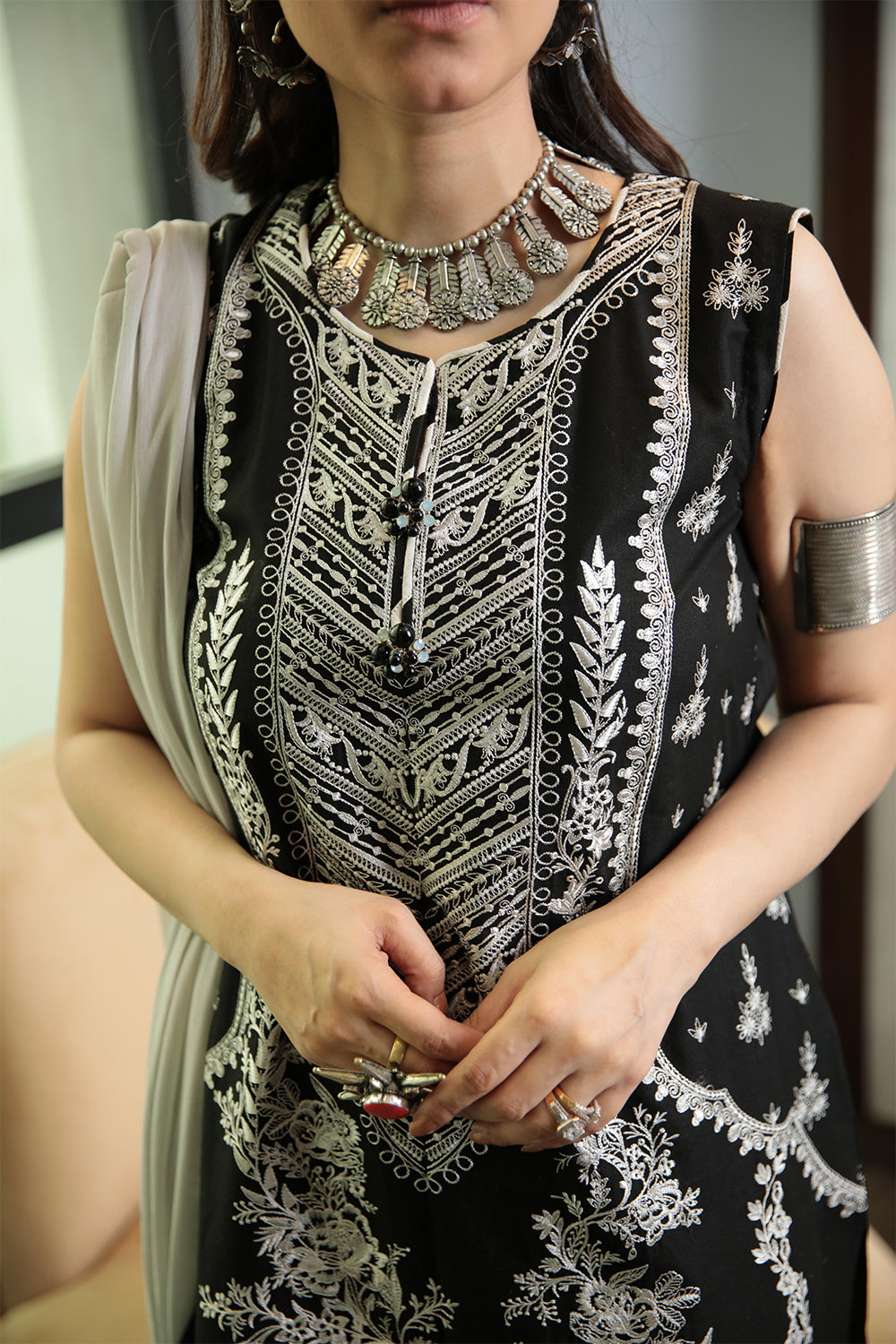 Stitched articles come with trousers tailored to match the unstitched trouser fabric provided. Please note that any appearance of shararas/ghararas in product images is for shoot purposes only unless otherwise specified in product details.