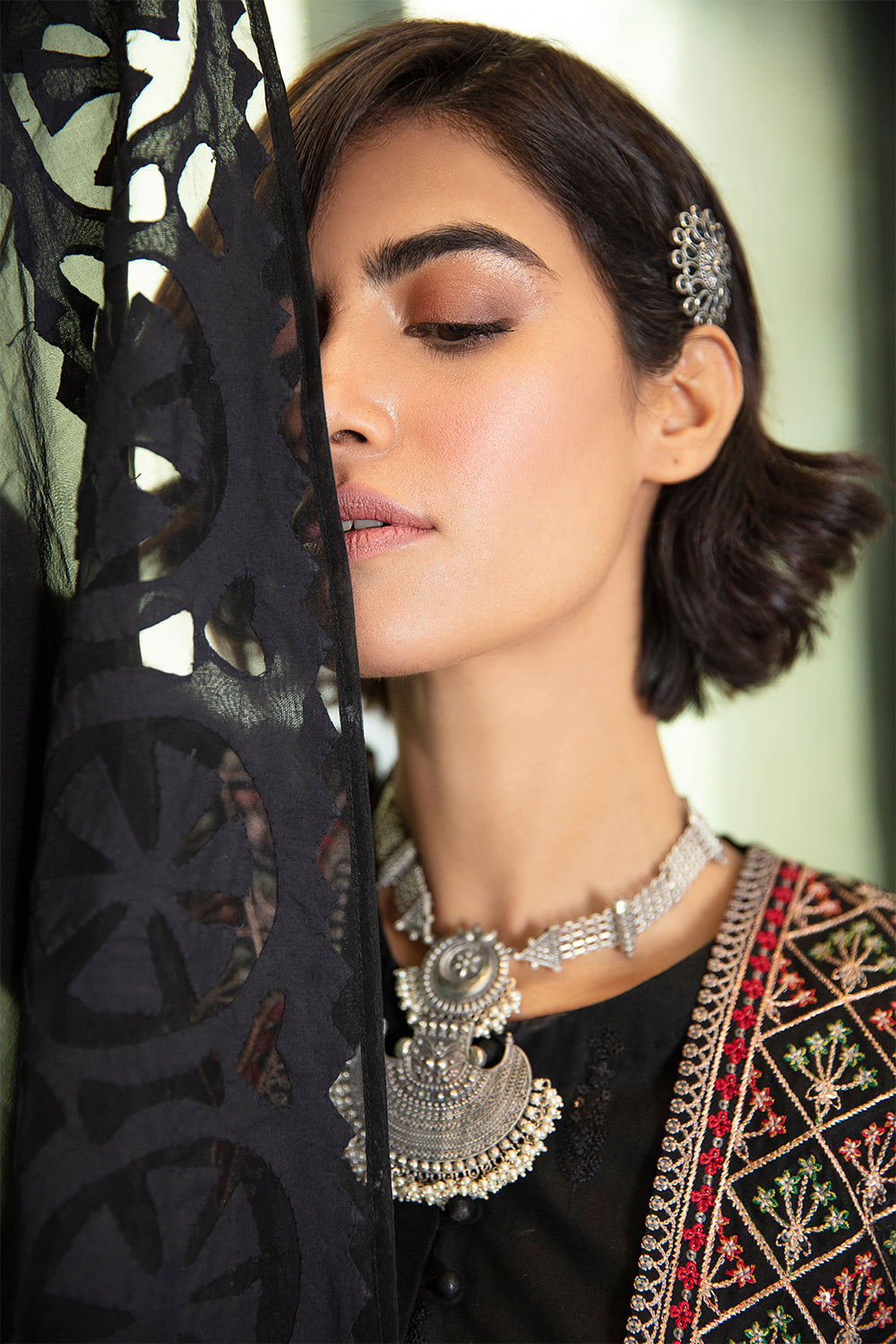 Stitched articles come with trousers tailored to match the unstitched trouser fabric provided. Please note that any appearance of shararas/ghararas in product images is for shoot purposes only unless otherwise specified in product details.